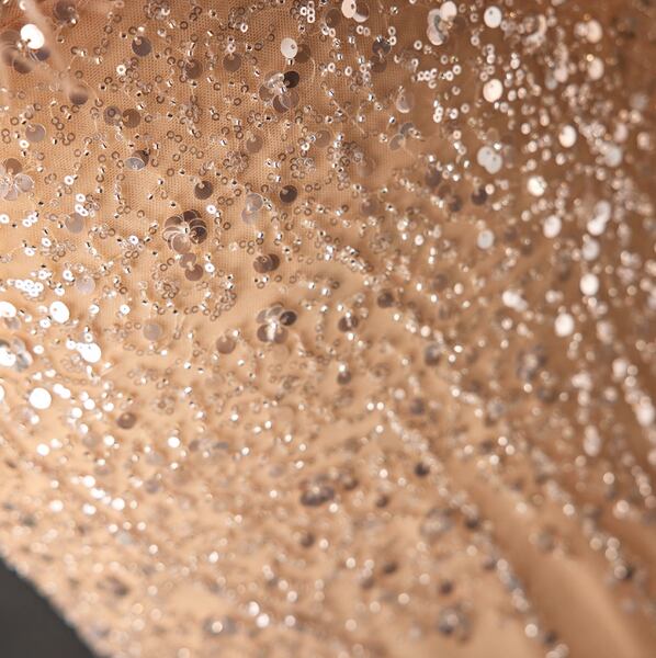 カラードレス シャンパン色 フェザー キラキラスパンコール マーメイドライン クラシカル 披露宴