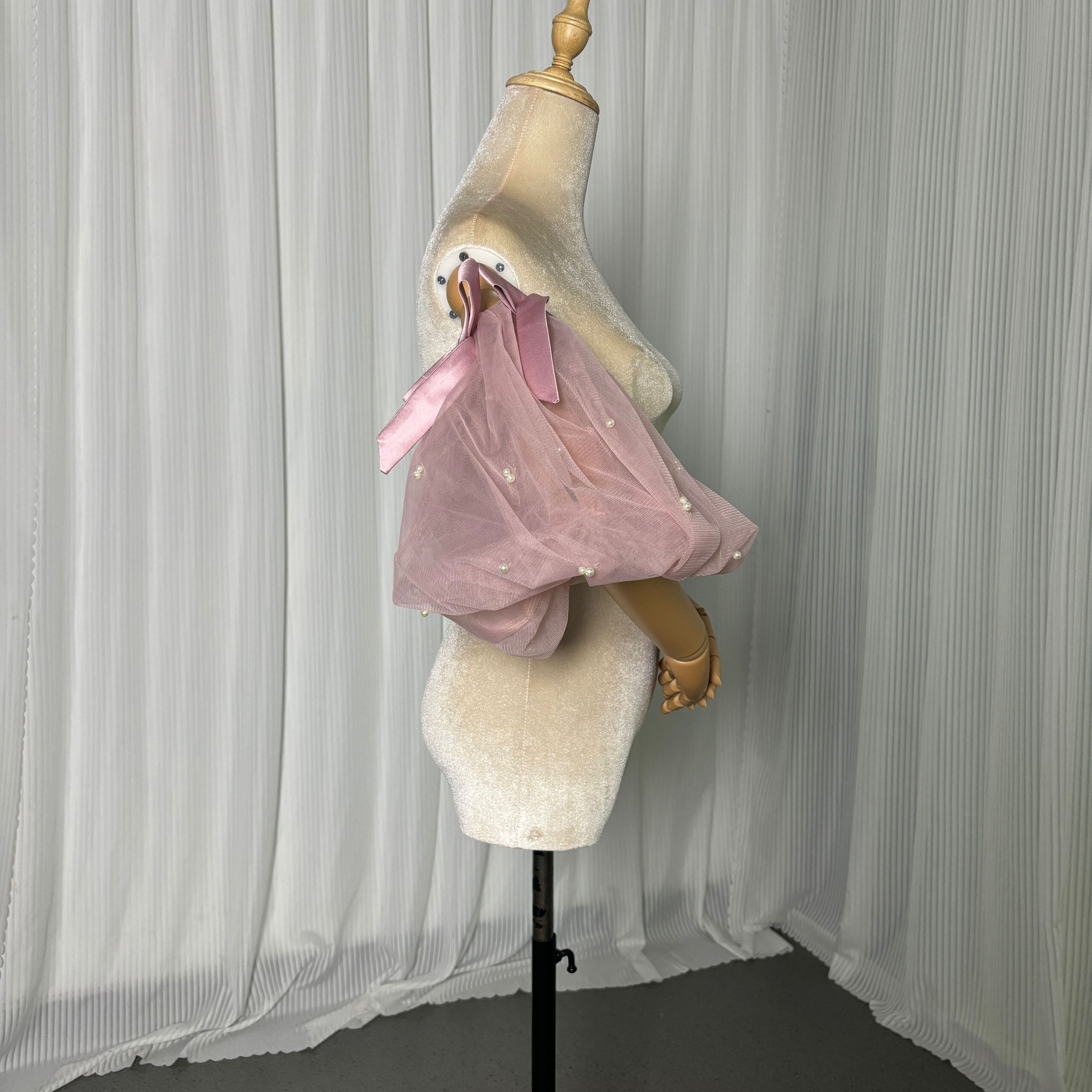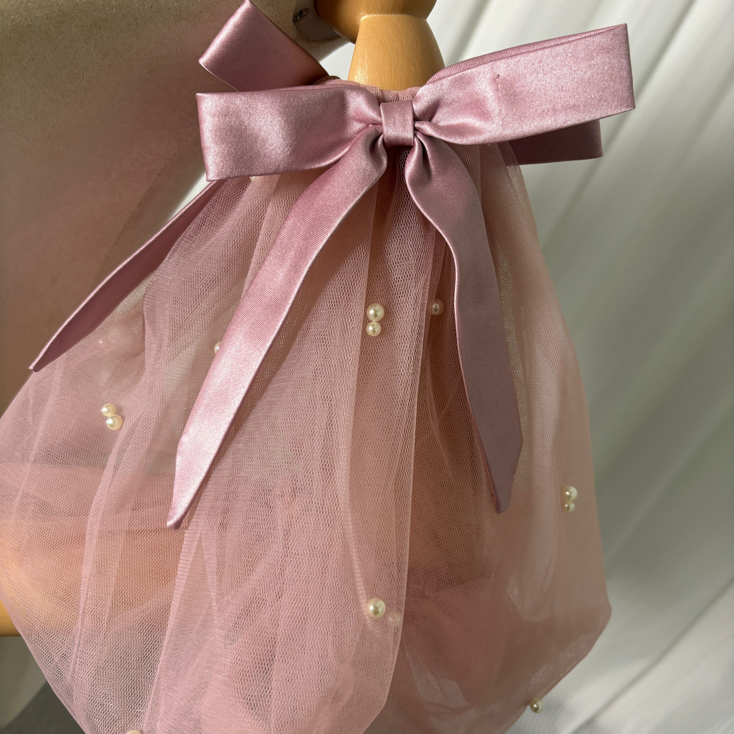 パフスリーブ ピンク パール リボン ストレッチ 可愛い 結婚式/披露宴