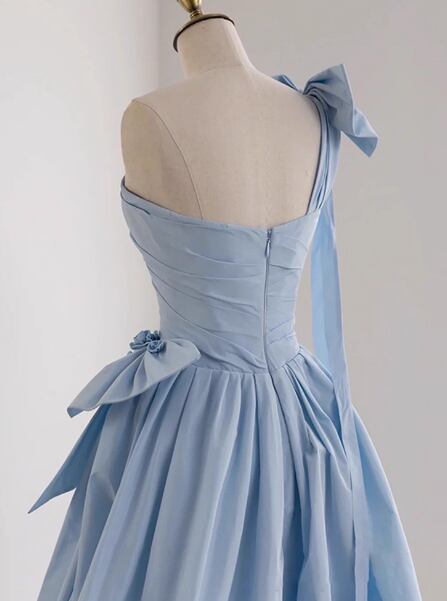 カラードレス ブルー ワンショルダー リボン ファスナー 大人っぽい 披露宴