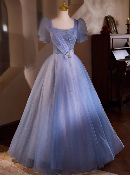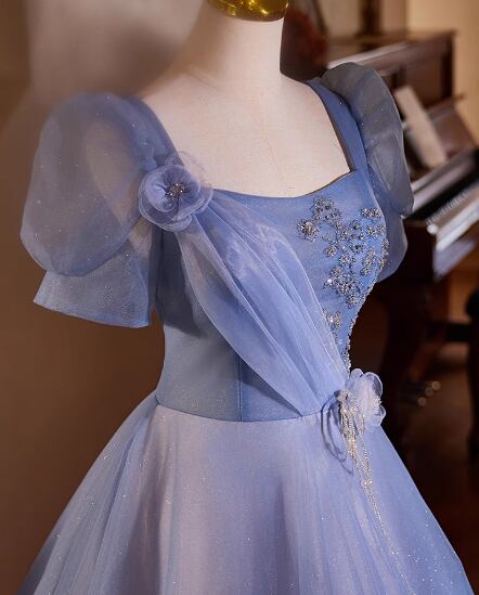 カラードレス オーキッド キラキラチュール Aライン パフスリーブ 編み上げ クラシカル