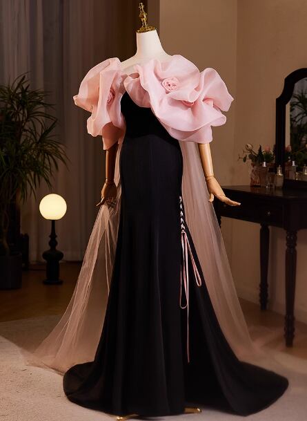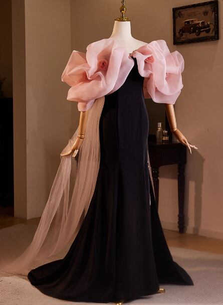 パーティードレス ブラック ピンク ふわふわ袖 優雅なシルエット 憧れのドレス 発表会 前撮り