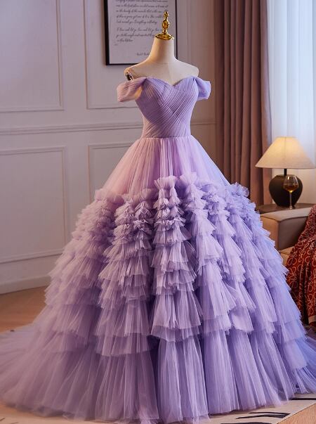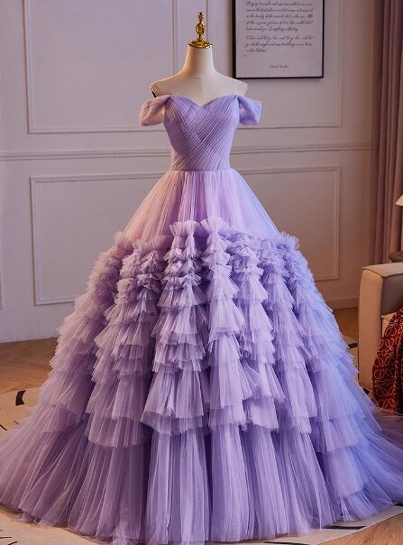 カラードレス パープル オフショルダー もこもこドレス プリンセスライン 披露宴