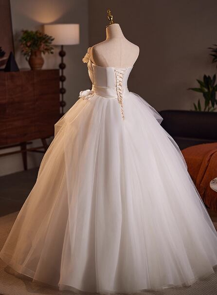 ウェディングドレス ベアトップ 3D立体レース刺繍 ボリュームドレス 編み上げ 結婚式