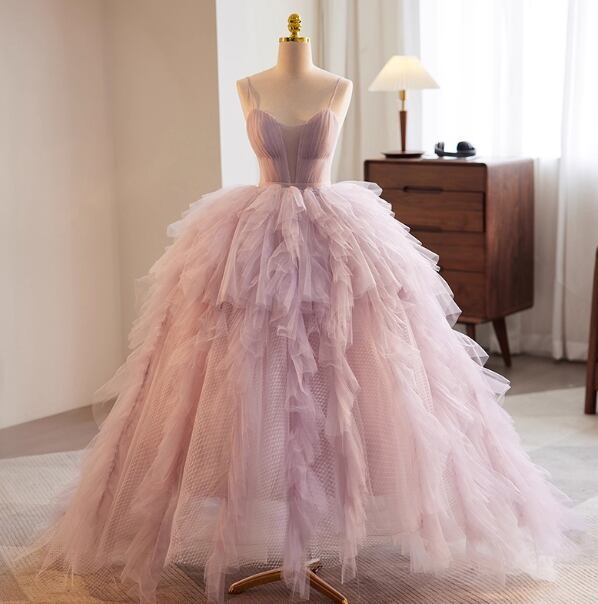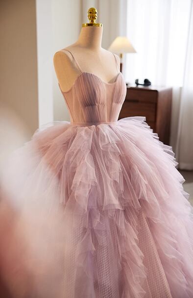 フランス風 カラードレス オーキッド キャミソール ふわふわドレス 揺らめく裾 披露宴