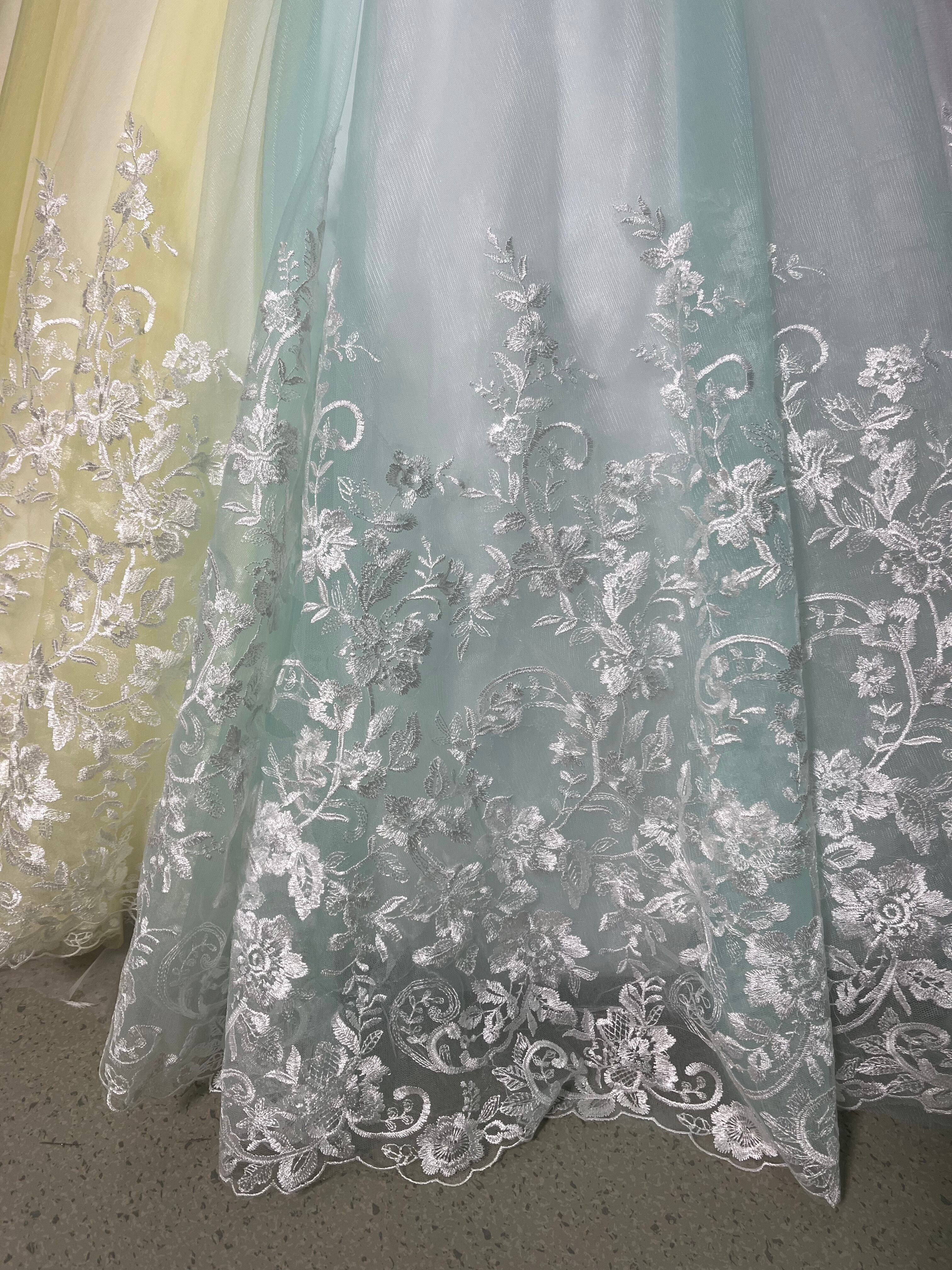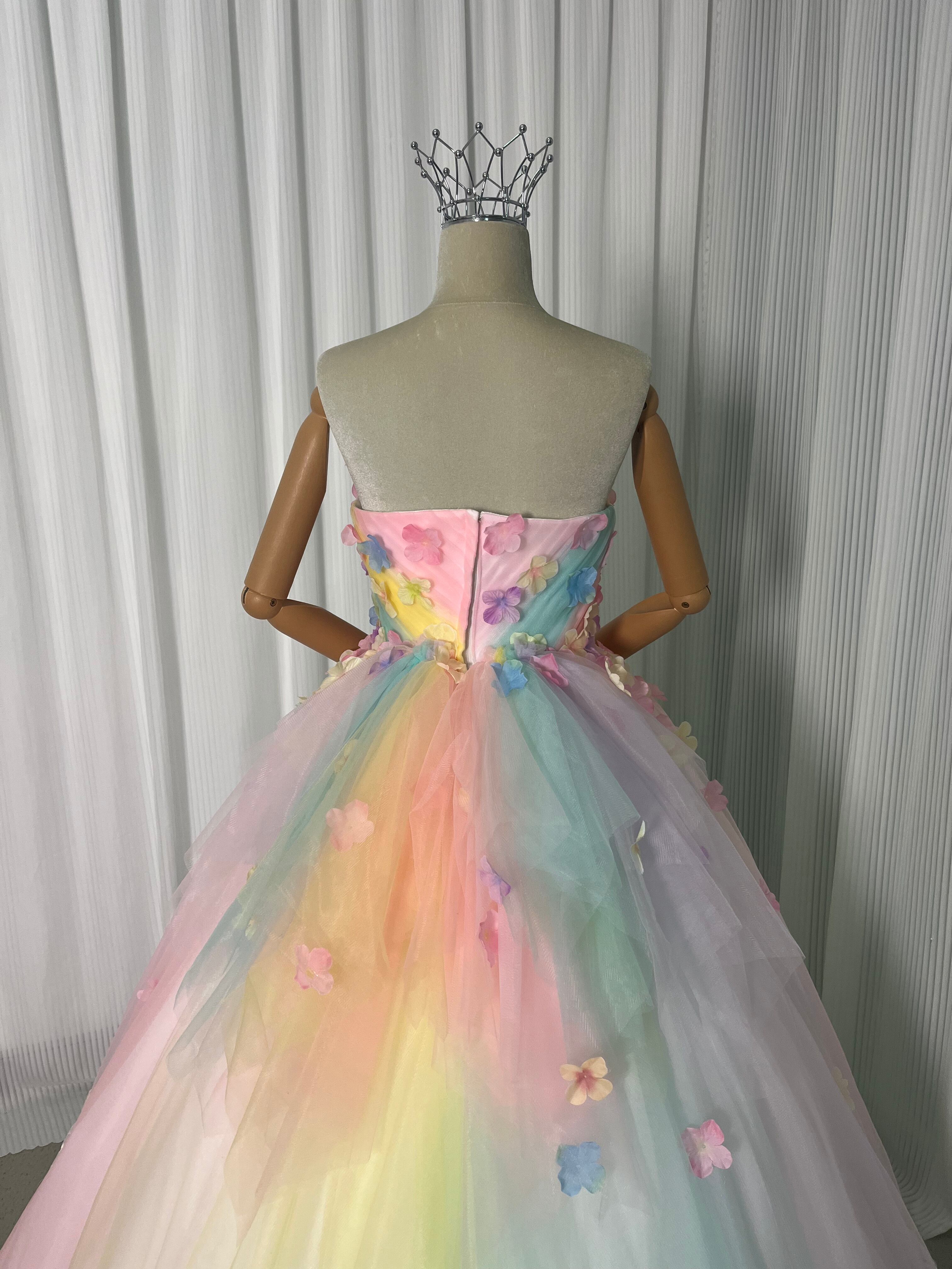 豪華!カラードレス 虹色 プリンセスライン 花モチーフ 3D立体レース刺繍 ファスナー 花嫁 前撮り
