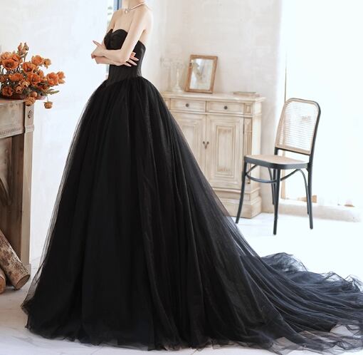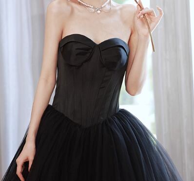 パーティードレス ブラック ベアトップ チュールスカート プリンセスライン 編み上げ 発表会