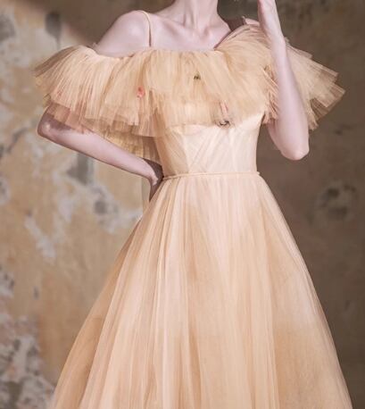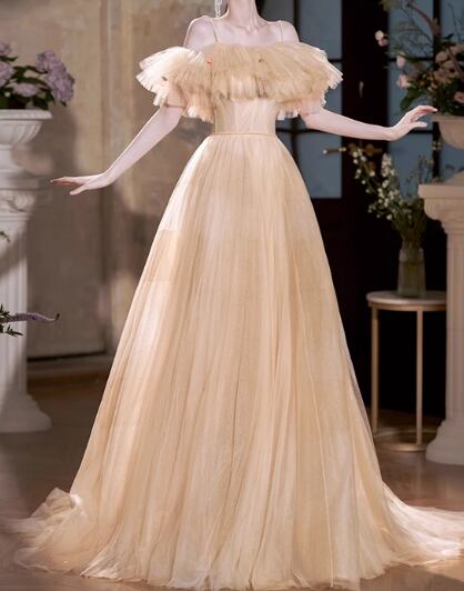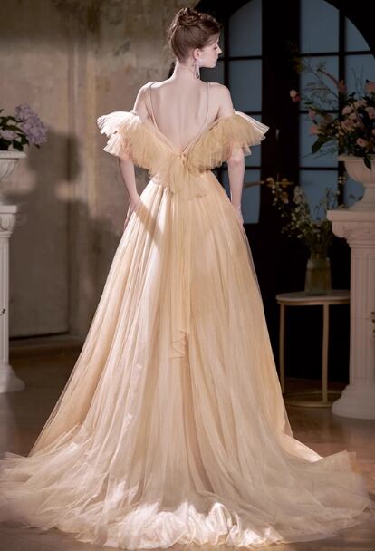 カラードレス シャンパン色 オフショルダー キャミソール 背中見せ クラシカル 演奏会/音楽会