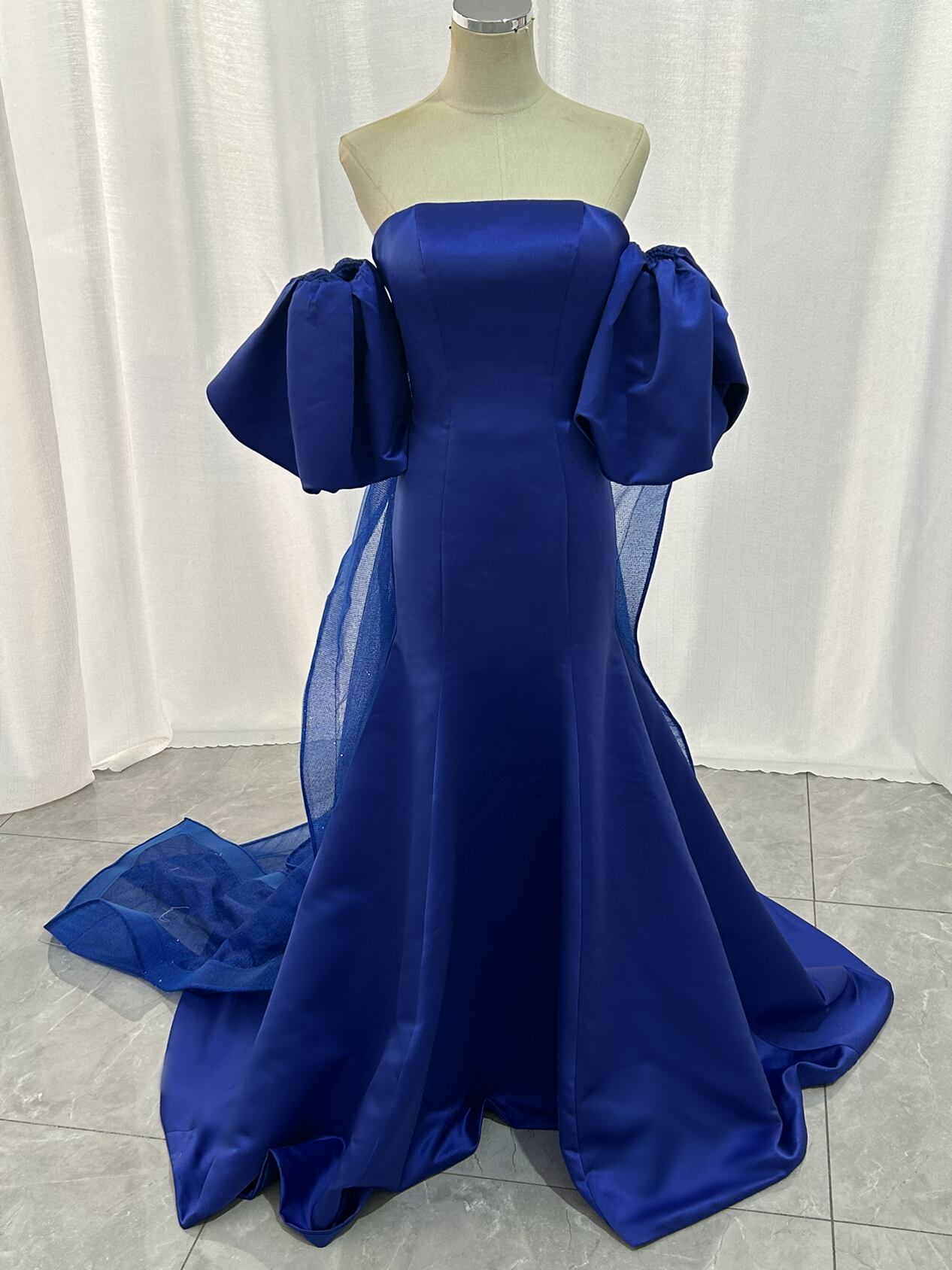 カラードレス ネイビー ベアトップ パフスリーブ マーメイドライン ふっくら柔らかなバックリボン クラシカル 演奏会