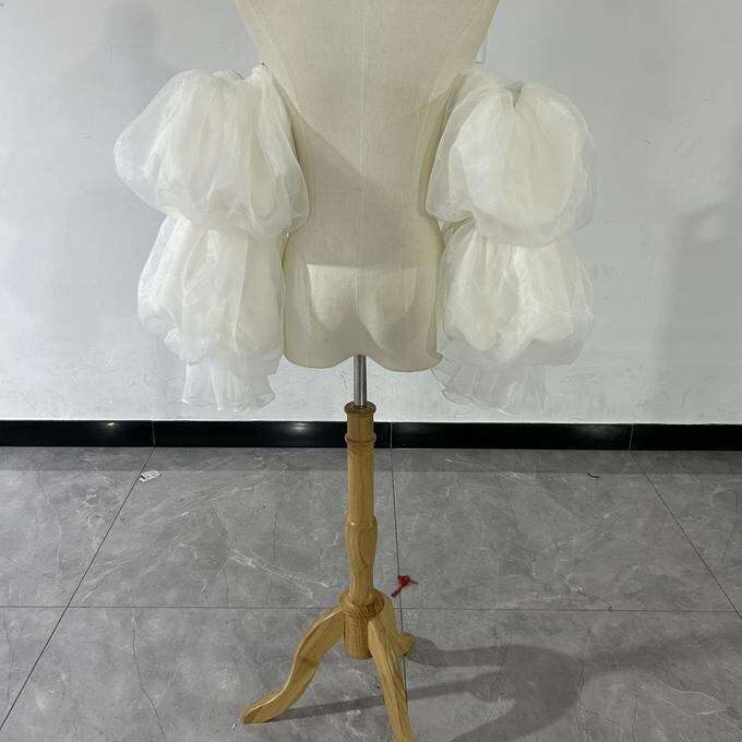 実例写真!パフスリーブ 姫袖 オーガンジー クレープ生地 可愛い オフホワイト 色直し 花嫁