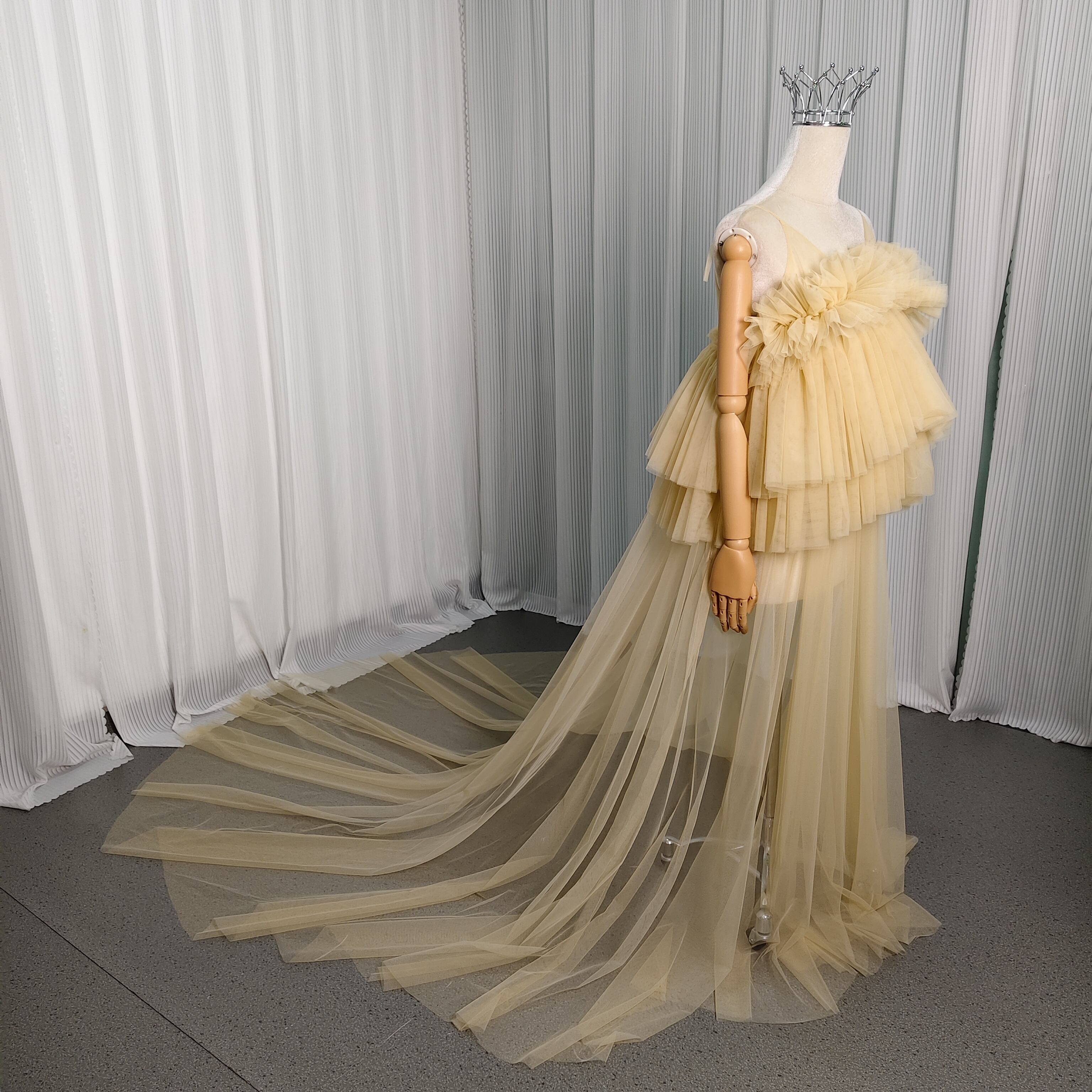 イエロー キャミソール カラードレス 胸元フリル オーバードレス ロングトレーン 妊婦 前撮り