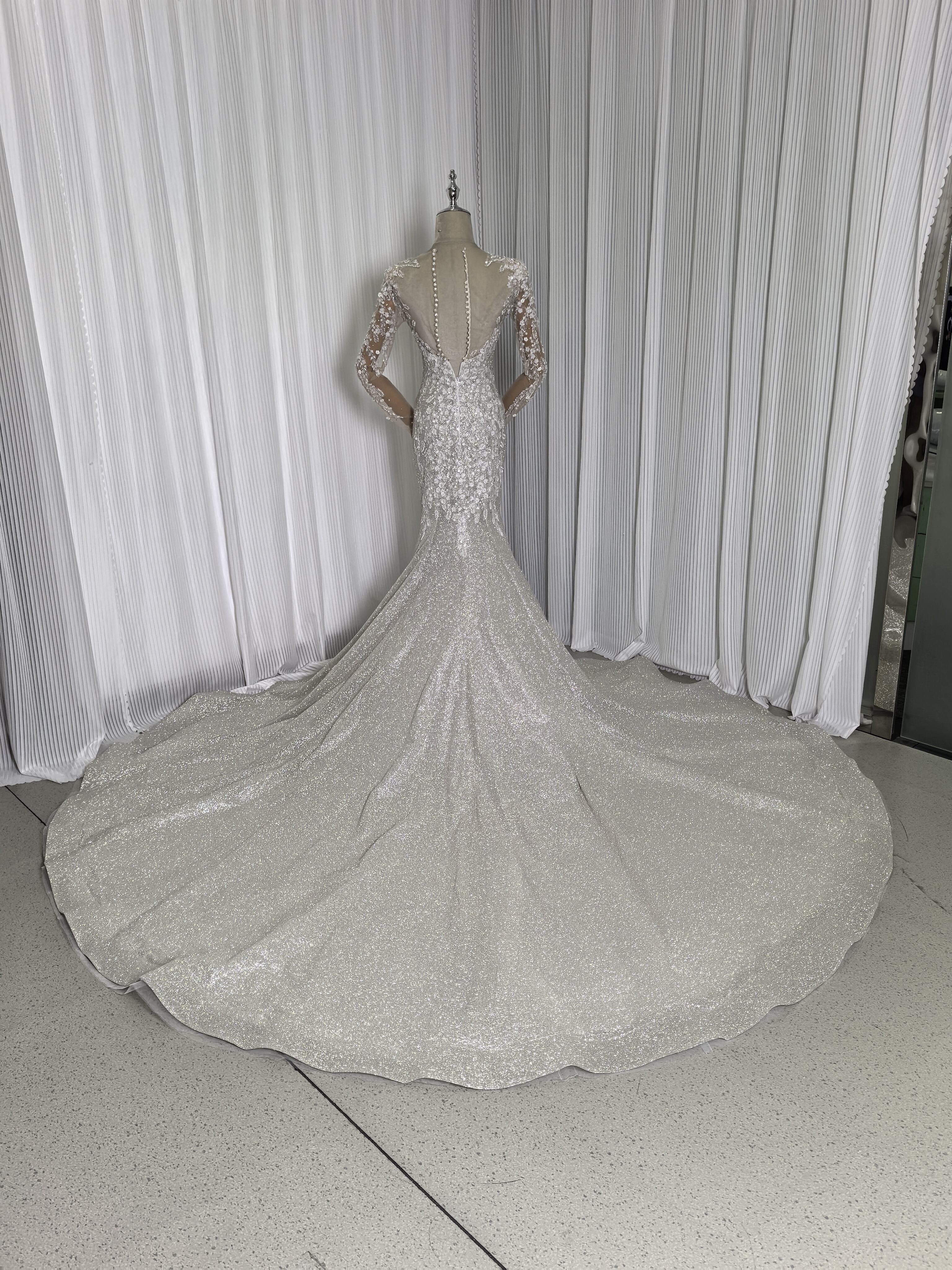 華やか ウエディングドレス 韓国風ドレス マーメイドライン グリッタードレス ハンドメイド 結婚式 花嫁