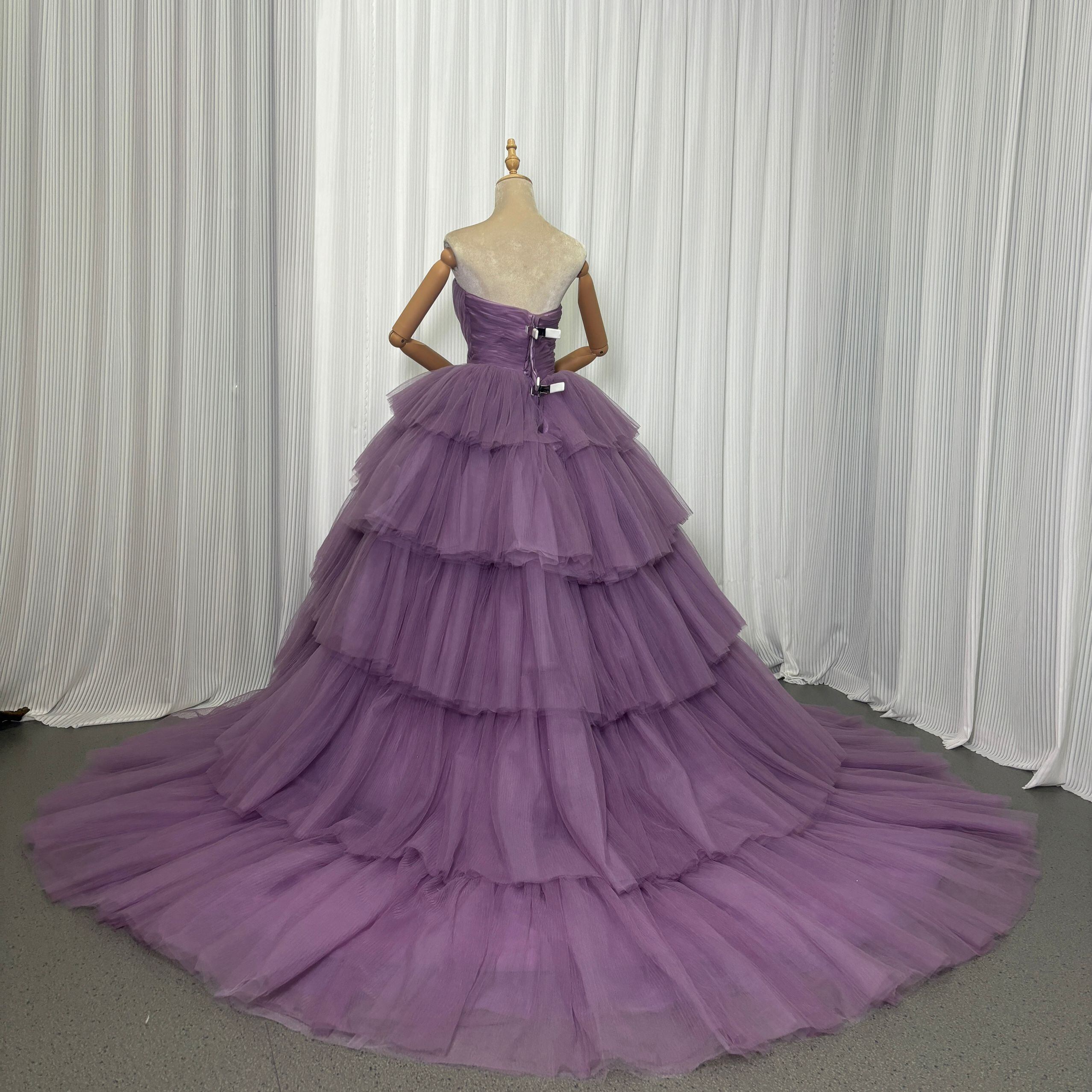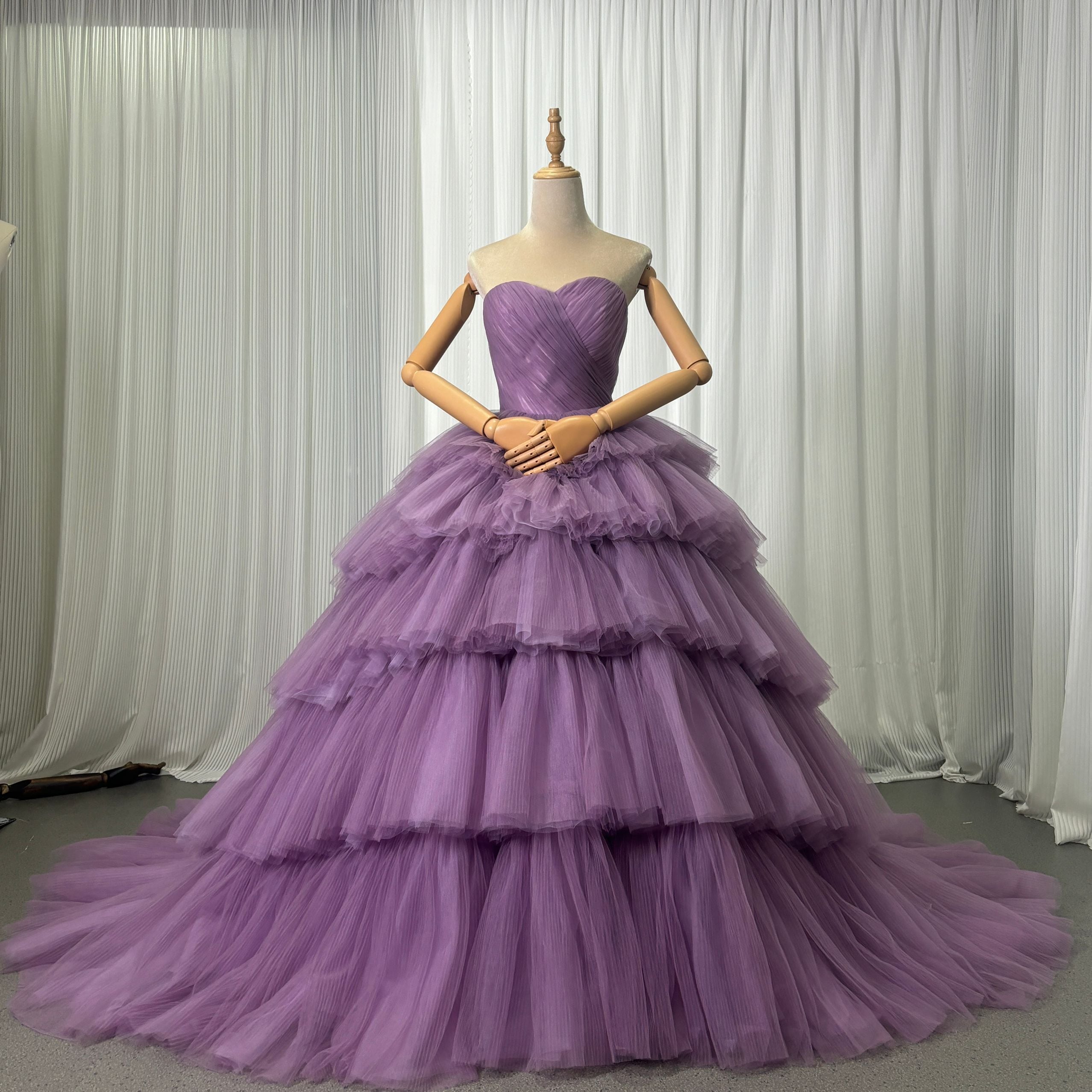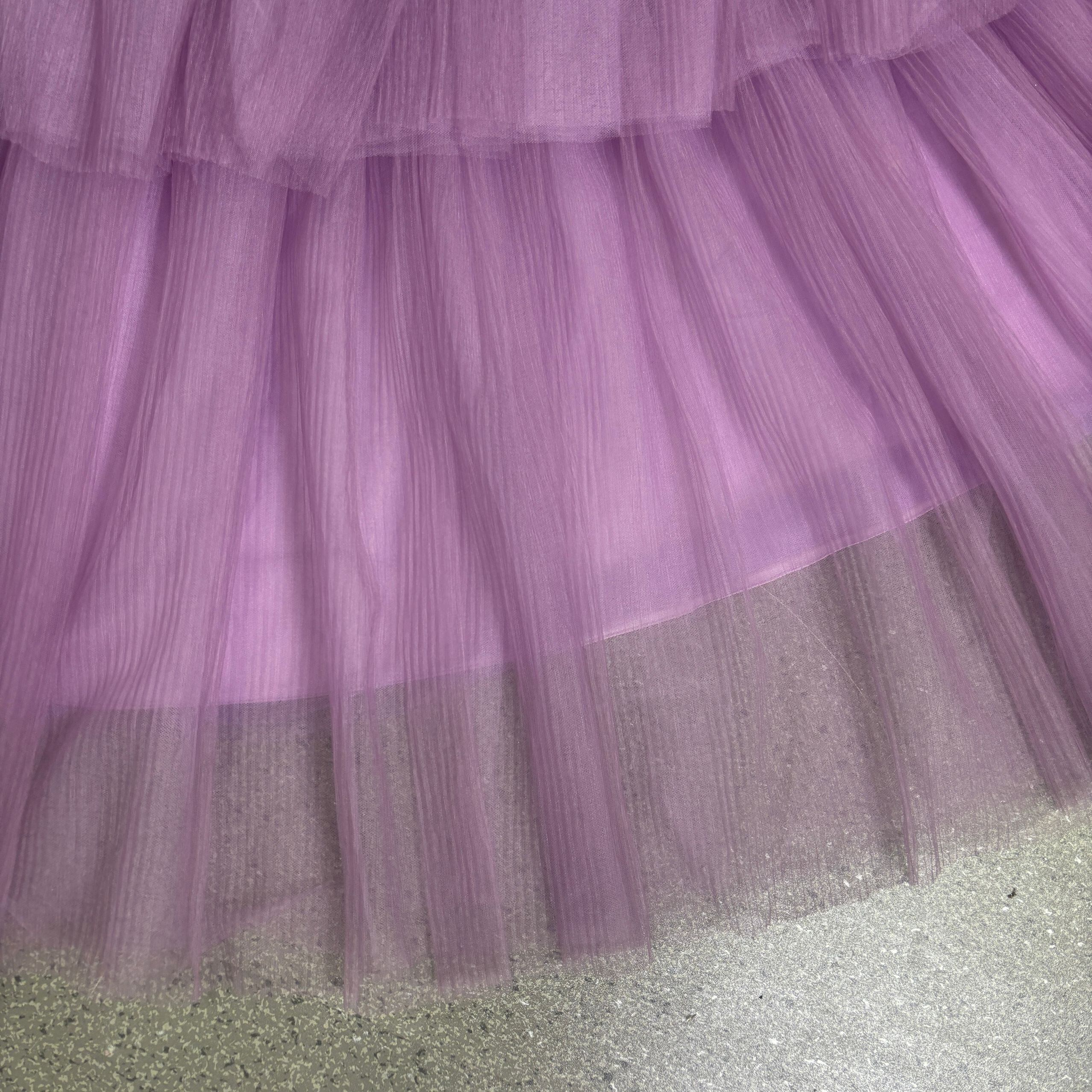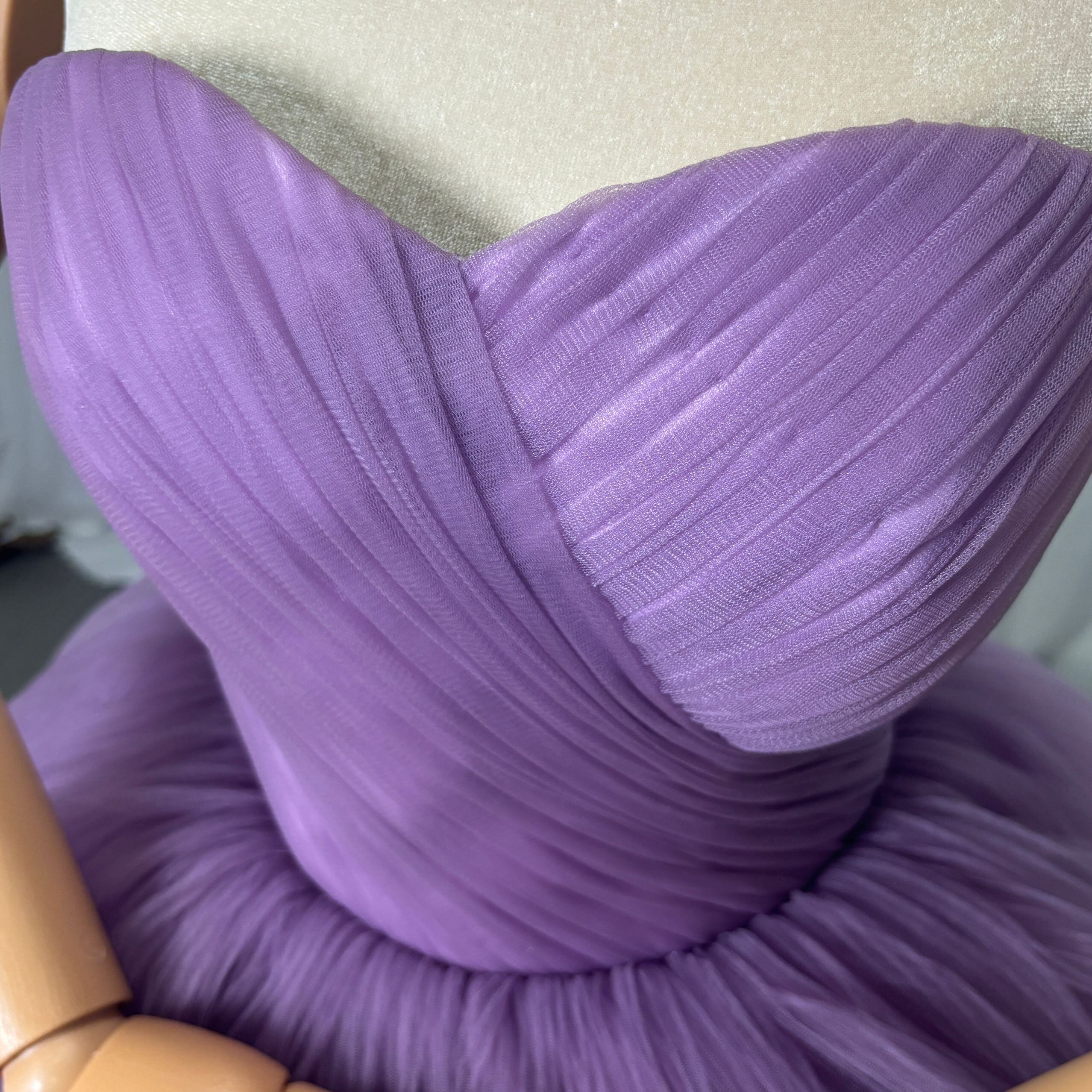 上品!クラシカル カラードレス パープル ベアトップ フリルドレス ボリュームドレス 披露宴