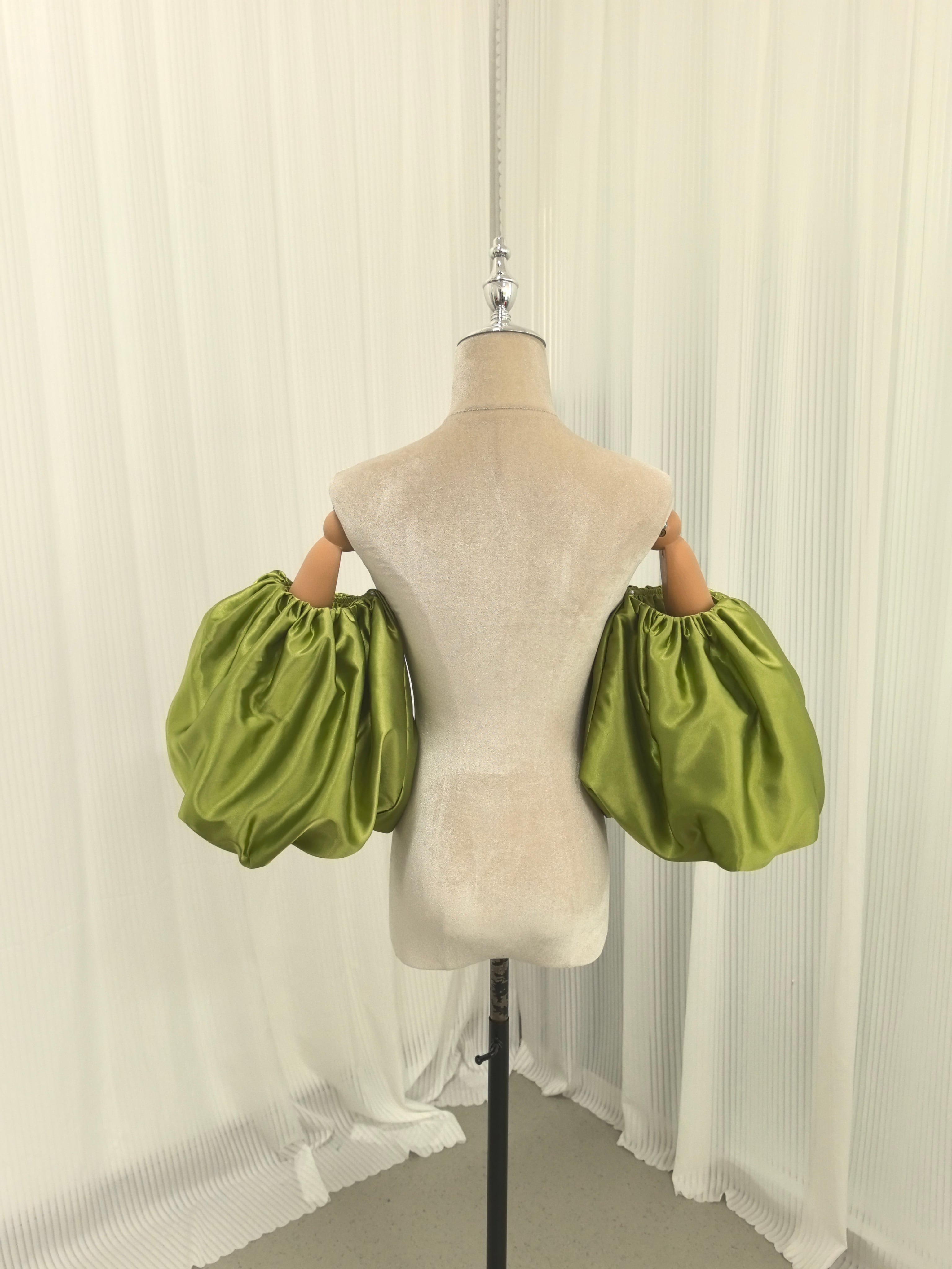 パフスリーブ グリーン 光沢サテン 取り外し袖 ストレッチ エレガント 前撮り