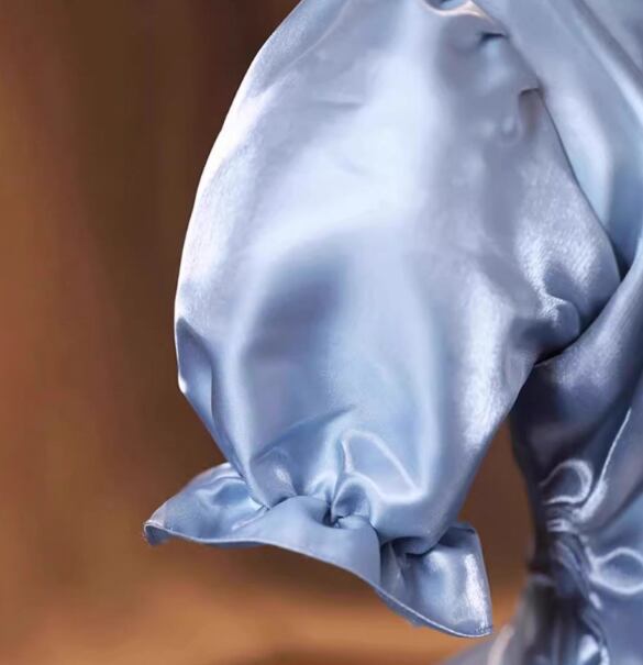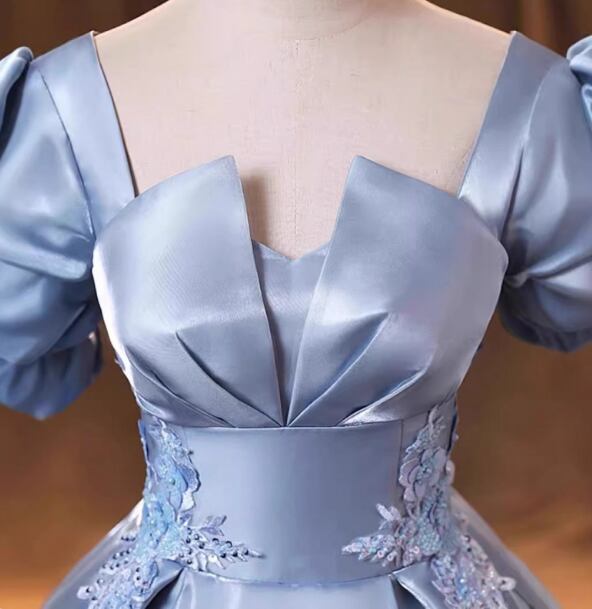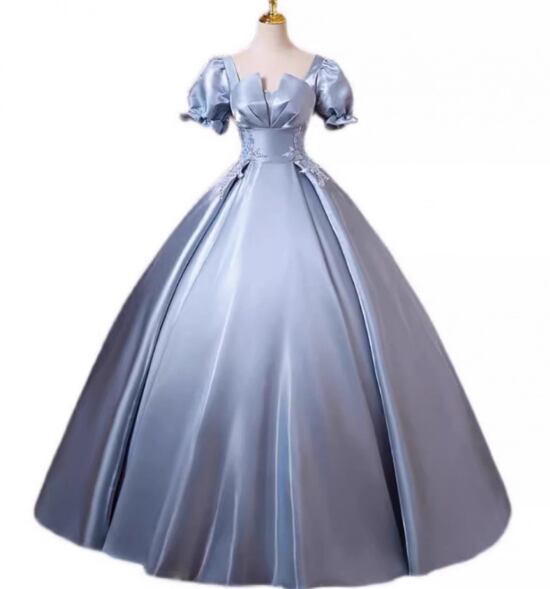 カラードレス ブルー 光沢サテン プリンセスライン 上品レース 編み上げ 前撮り