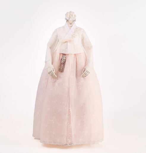 薄ピンク 韓服 チマチョゴリ プリンセスライン 贅沢な総レース 花モチーフ クラシカル 憧れのドレス 前撮り