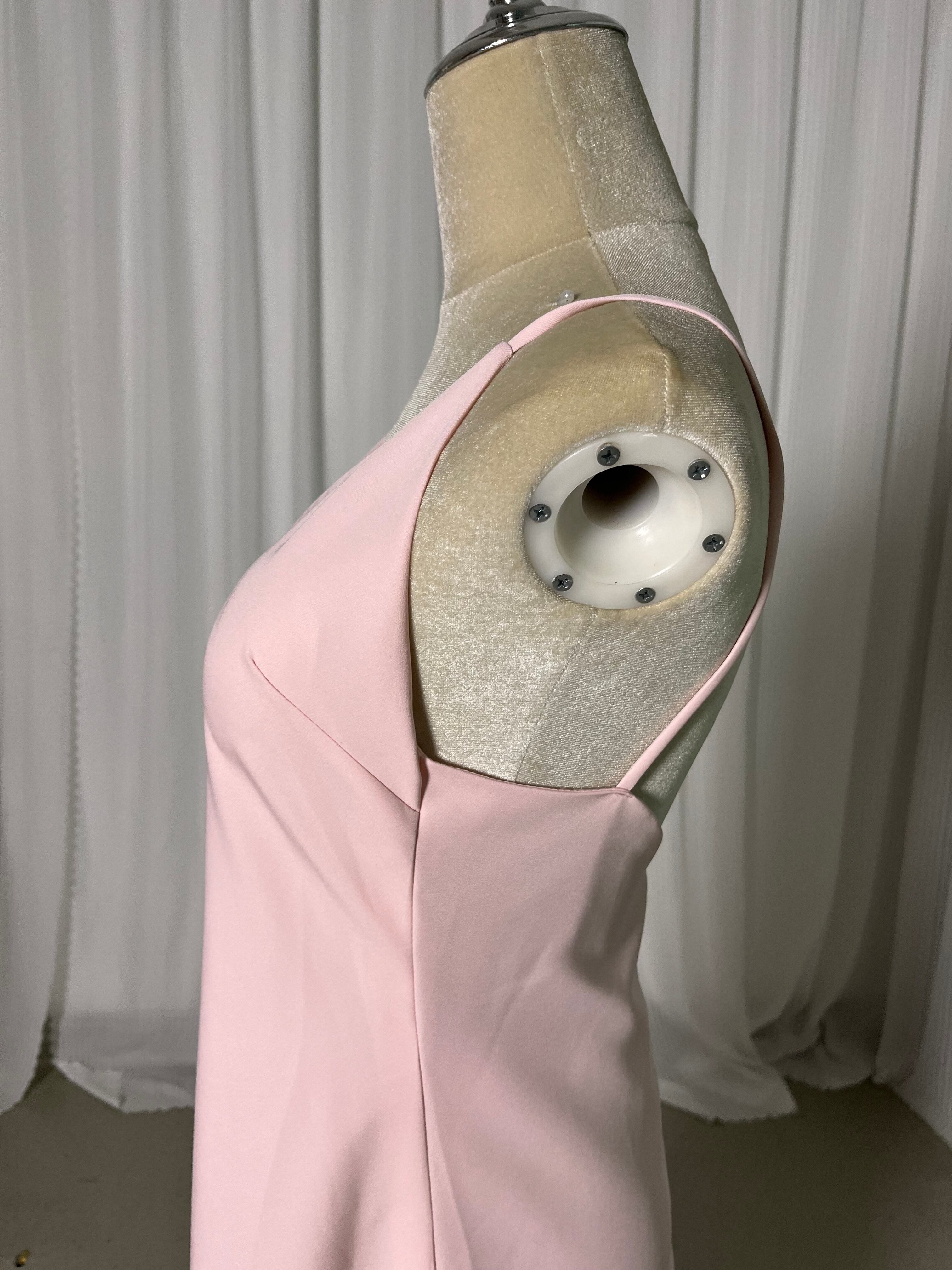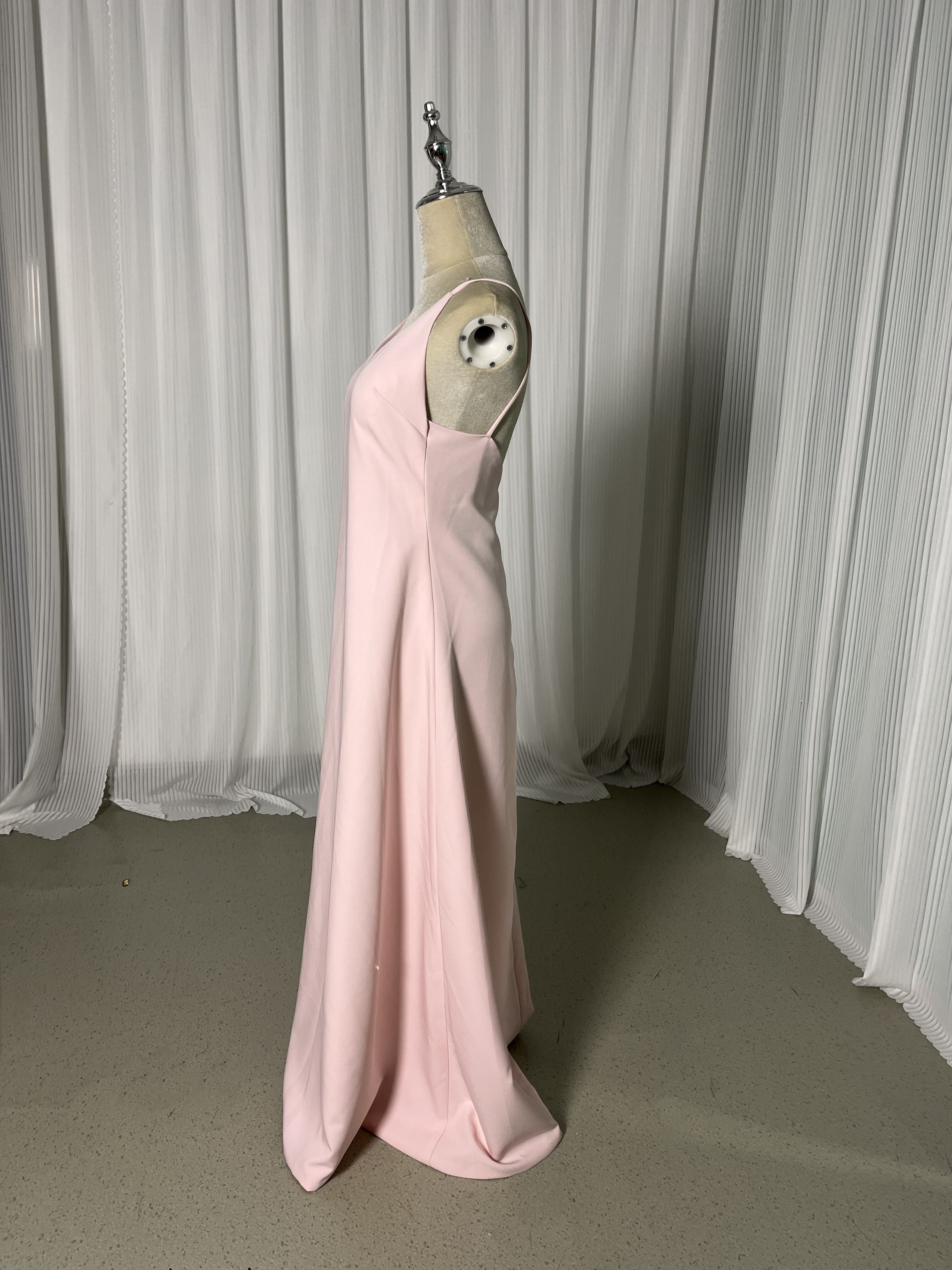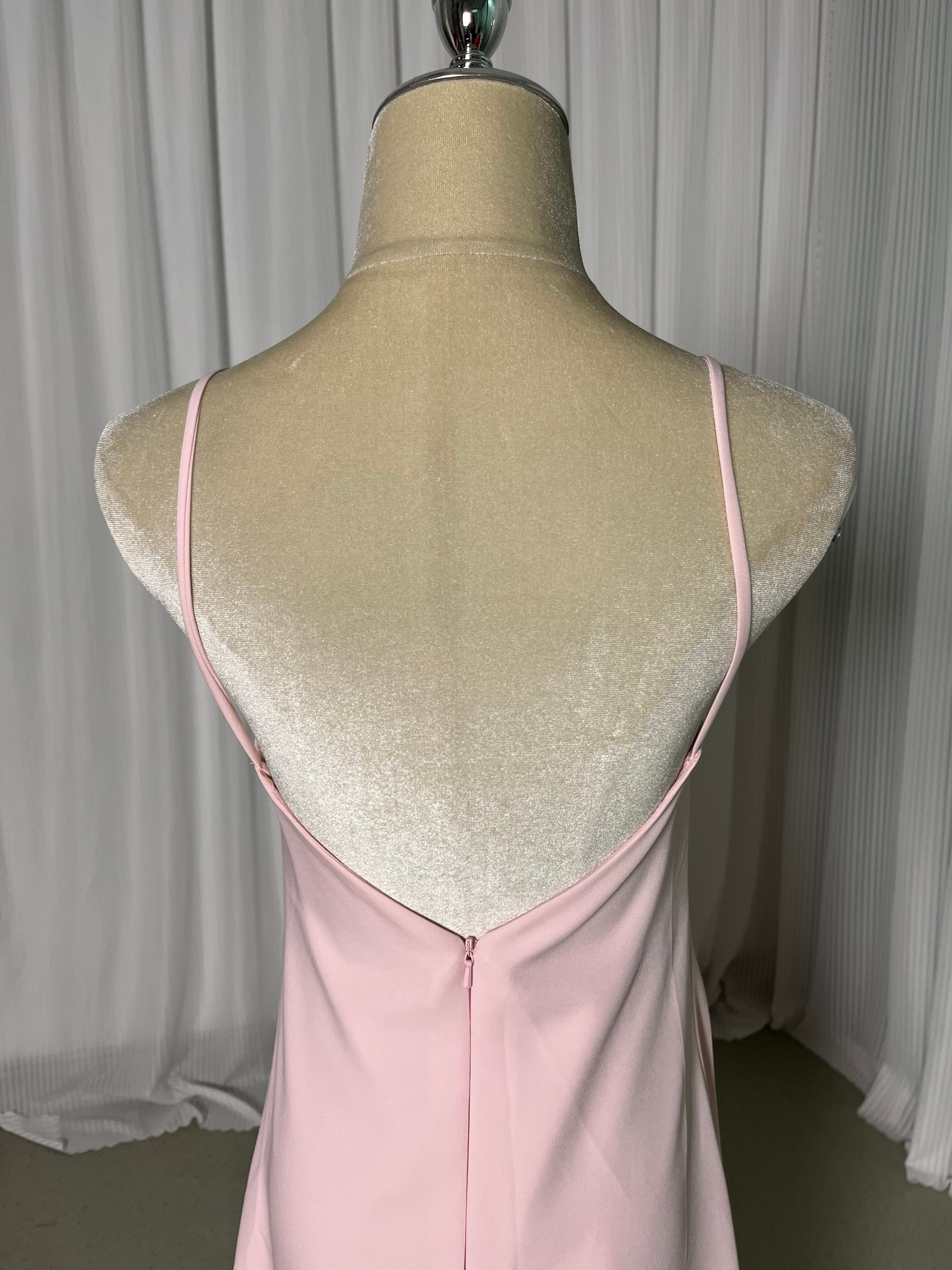 パーティードレス ピンク キャミソール クレープ生地 ロング ファスナー バックレス 二次会 前撮り