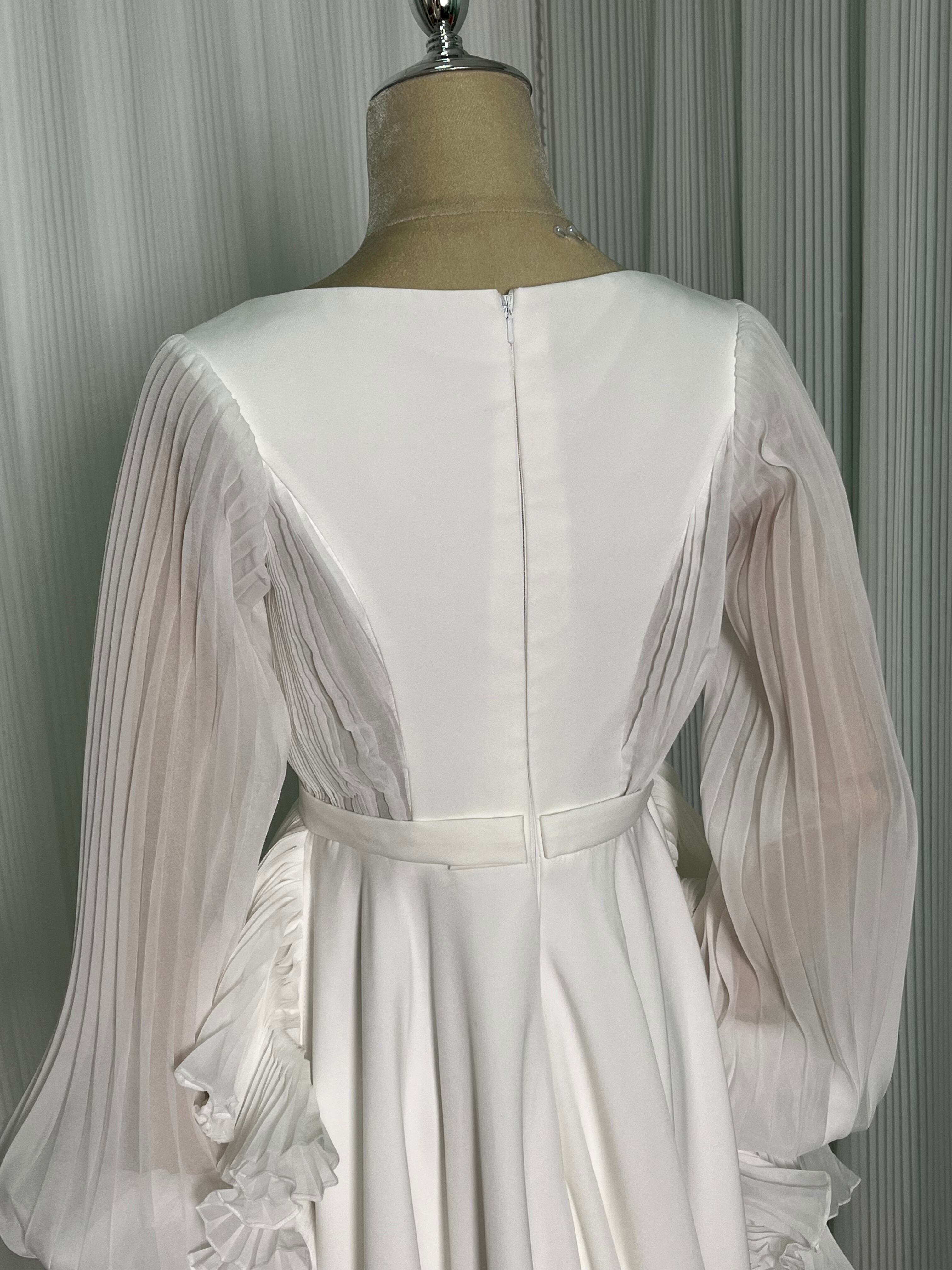 ウェディングドレス プリーツスカート ロングスリーブ デザイン感 大人っぽい 抜群のおしゃれ見え 二次会