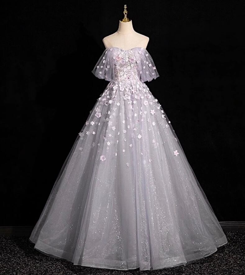 美品!カラードレス オーキッド オフショルダー 花モチーフ 可愛い ふわふわドレス 花嫁 前撮り