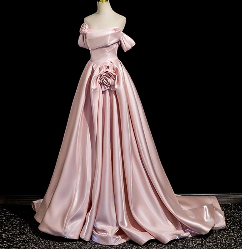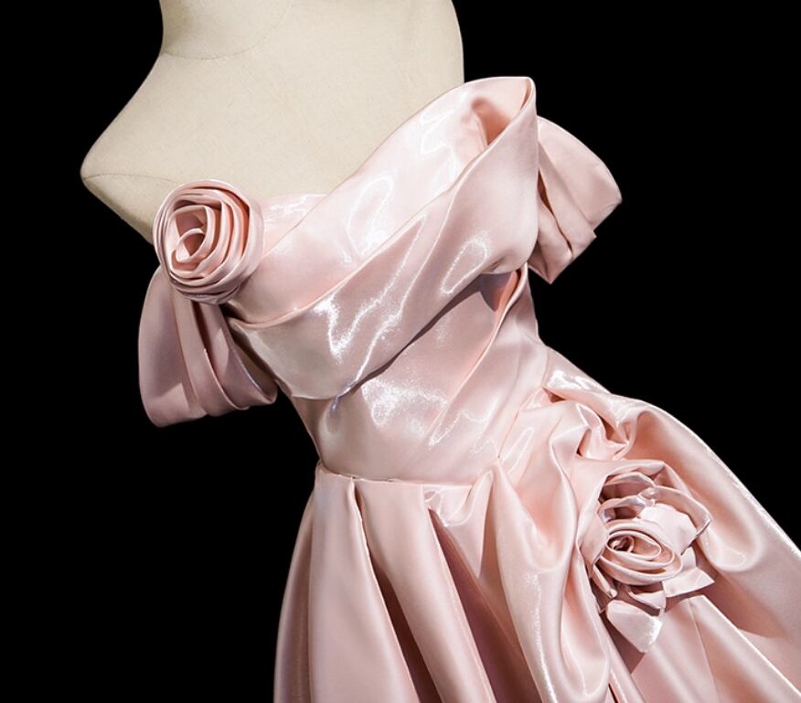 上品!カラードレス ピンク 取り外しオフショルダー 光沢サテン 細見えシルエット 音楽会