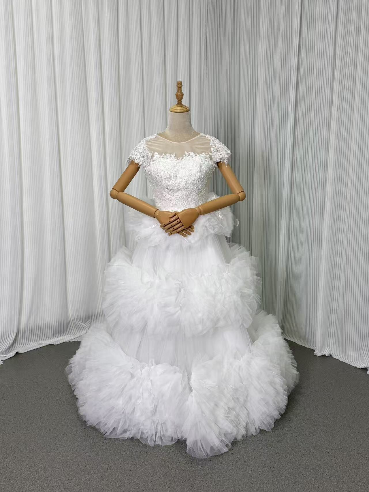 ウェディングドレス キラキラ光る刺繍 短袖 プリンセスライン ボリュームドレス 結婚式