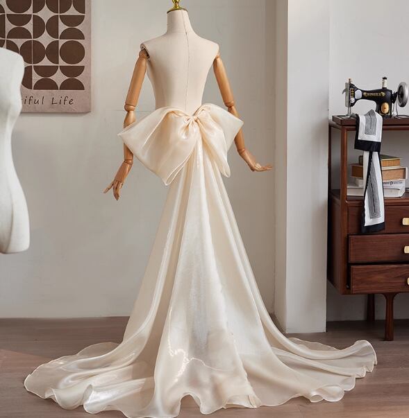 シャンパン色 ふっくら柔らかなバックリボン 光沢感 ふわふわ 可愛い 結婚式