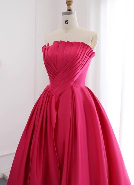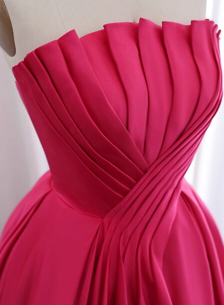 カラードレス ローズピンク ベアトップ ハンドドレープ 光沢サテン ロング ファスナー 披露宴