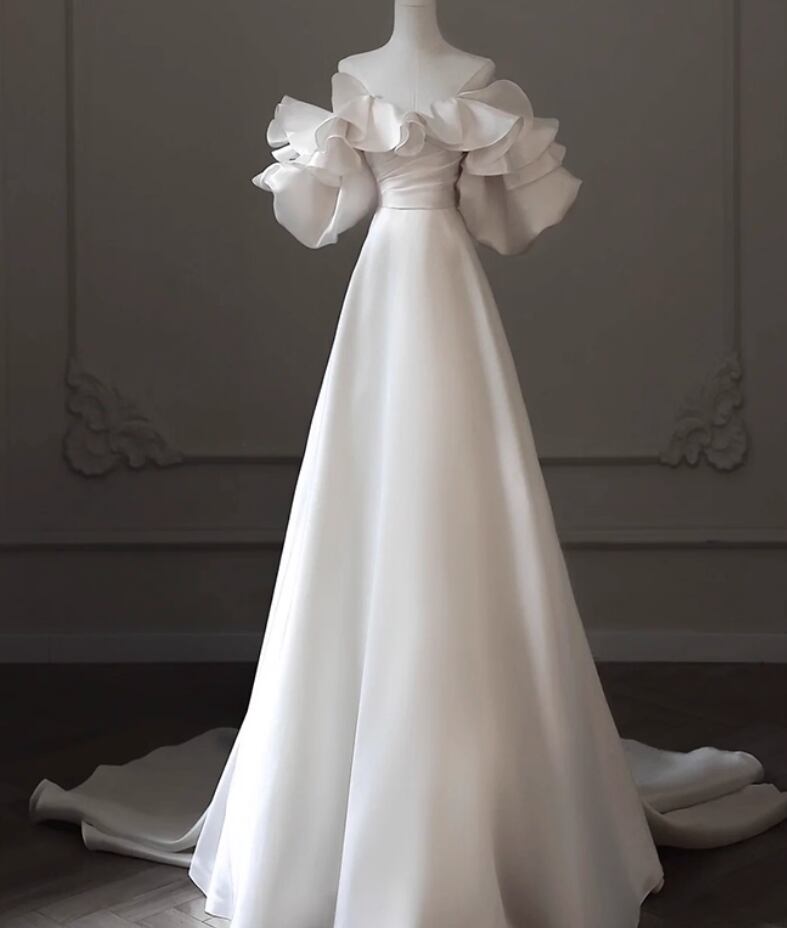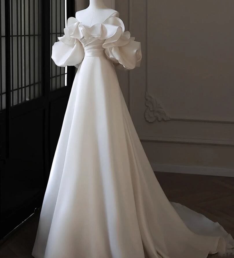 ウエディングドレス 取り外しオフショルダー パフスリーブ クラシカル くるみボタン 結婚式