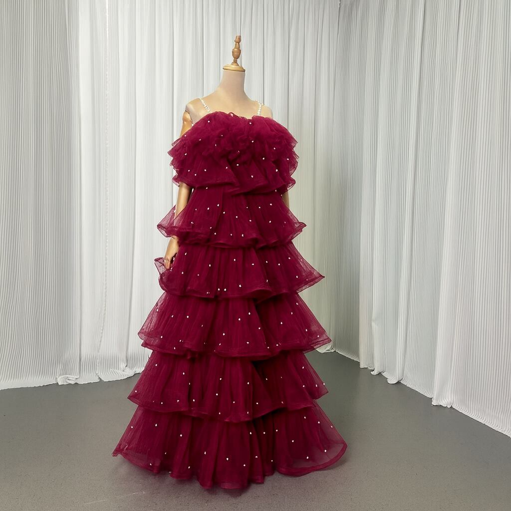 カラードレス チェリーピンク キャミソール ビーズ ティアードのドレス ラッフルフリル 二次会 ロング