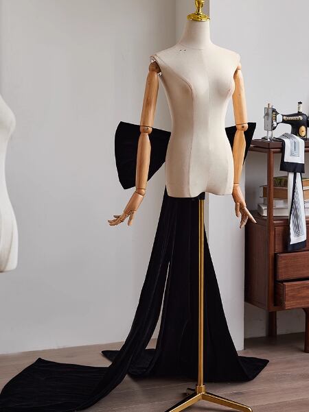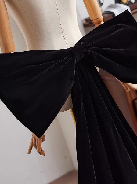 上品!豪華なバックリボン ブラック ビロード ミニトレーン クラシカル 前撮り