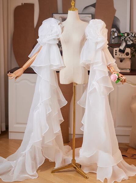 肩のリボン オフホワイト ポンチョ 花モチーフ ふわふわリボン 可愛い 前撮り