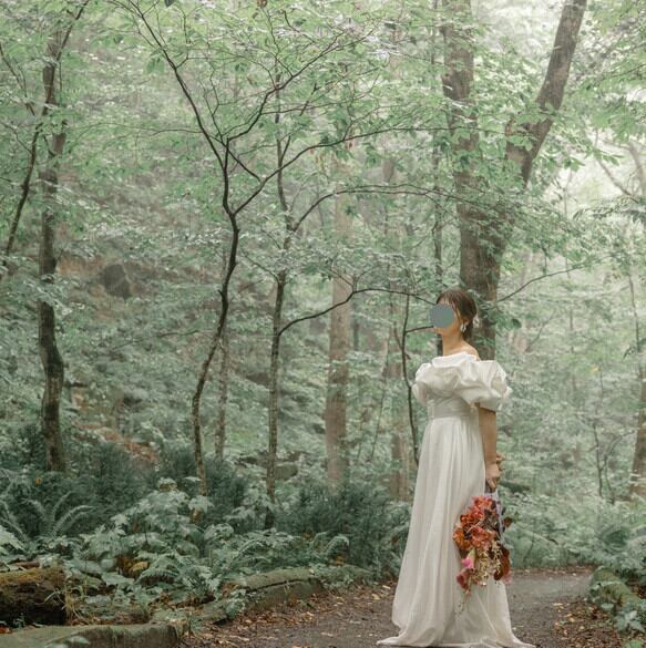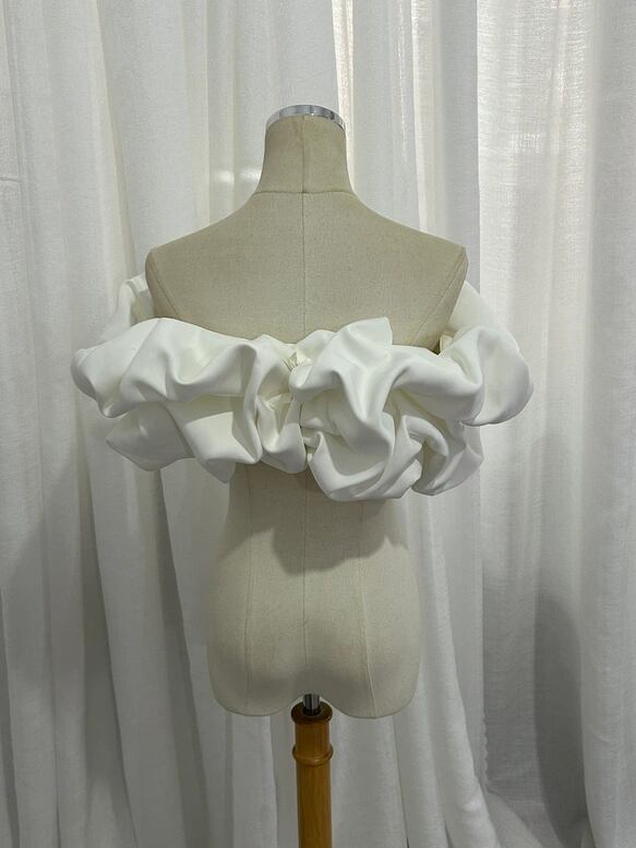 実例写真!取り外しオフショルダーのみ オフホワイト ラッフルフリル ストレッチ 拳式/前撮り