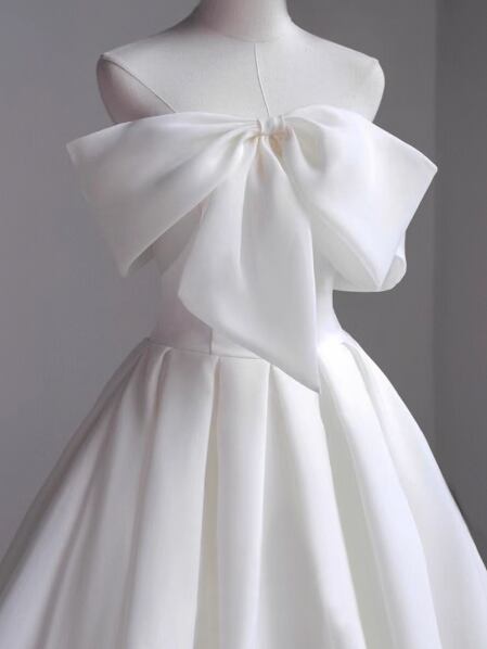 ウェディングドレス オフショルダー リボン Aライン エレガント 大人っぽい 結婚式