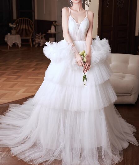 豪華!ウェディングドレス パール キャミソール 優雅なシルエット もこもこドレス 結婚式