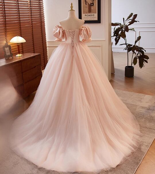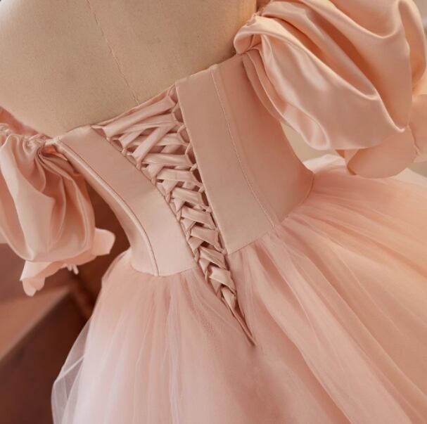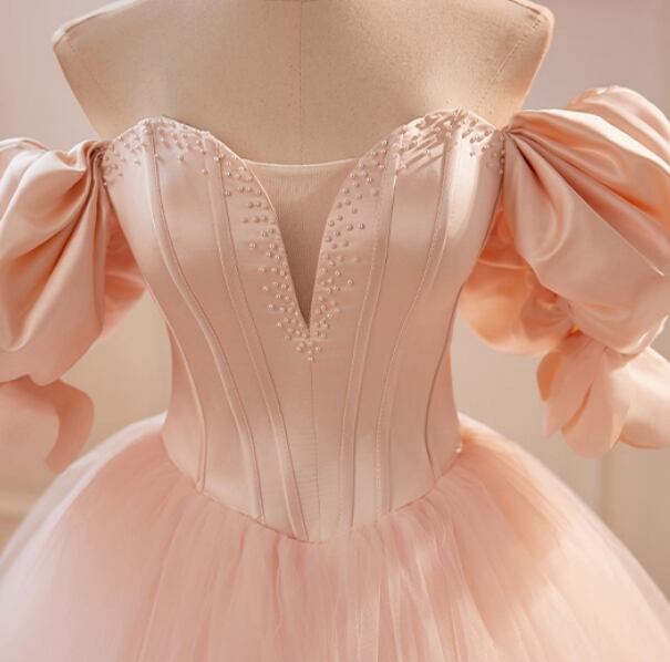 カラードレス ピンク ビジュー パフスリーブ ボリュームドレス 大人っぽい 憧れのドレス 結婚式