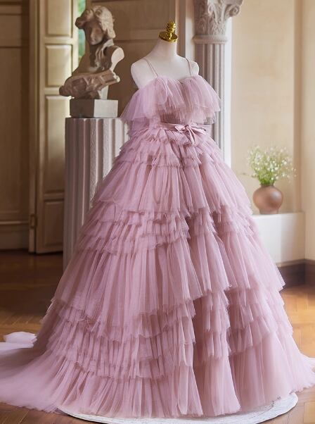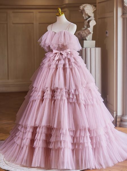 カラードレス ピンクソフィア キャミソール オフショルダー 柔らかく重ねたチュールスカート 華やか 花嫁