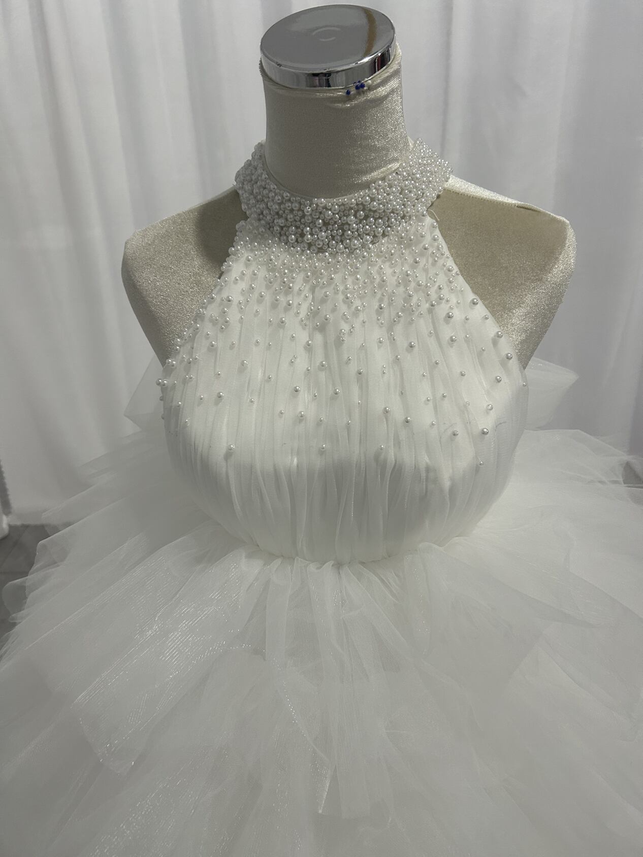豪華!ウェディングドレス ホルターネック パール もこもこドレス 背中見せ 結婚式 前撮り