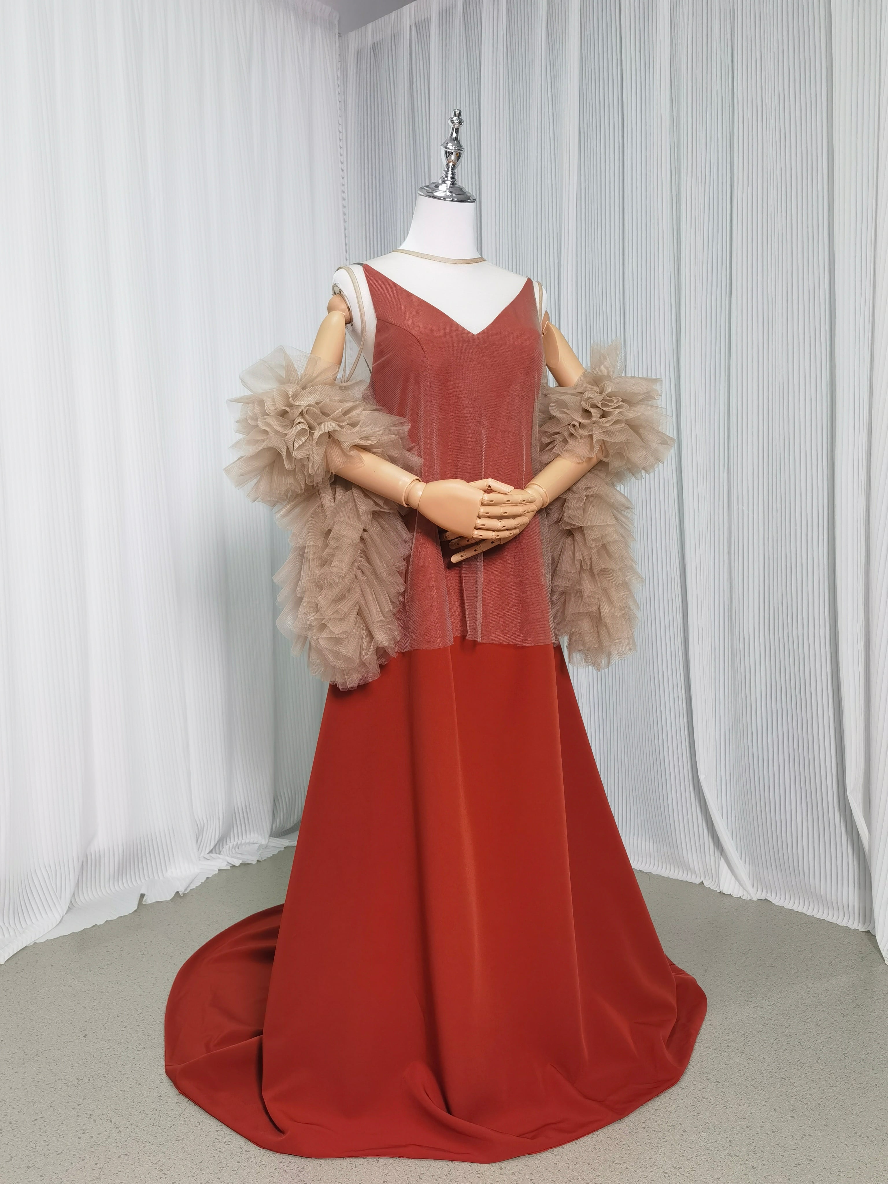 人気上昇!ツーピース ブラウン テラコッタ色 Vネック トップス+ワンピース キャミソール 前撮り