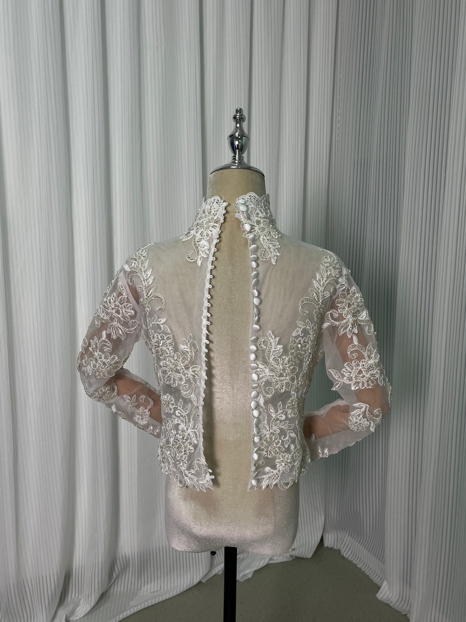 華やか ボレロ ロングスリーブ ハイネック くるみボタン キラキラ光る刺繍 エレガント 韓国風ドレス