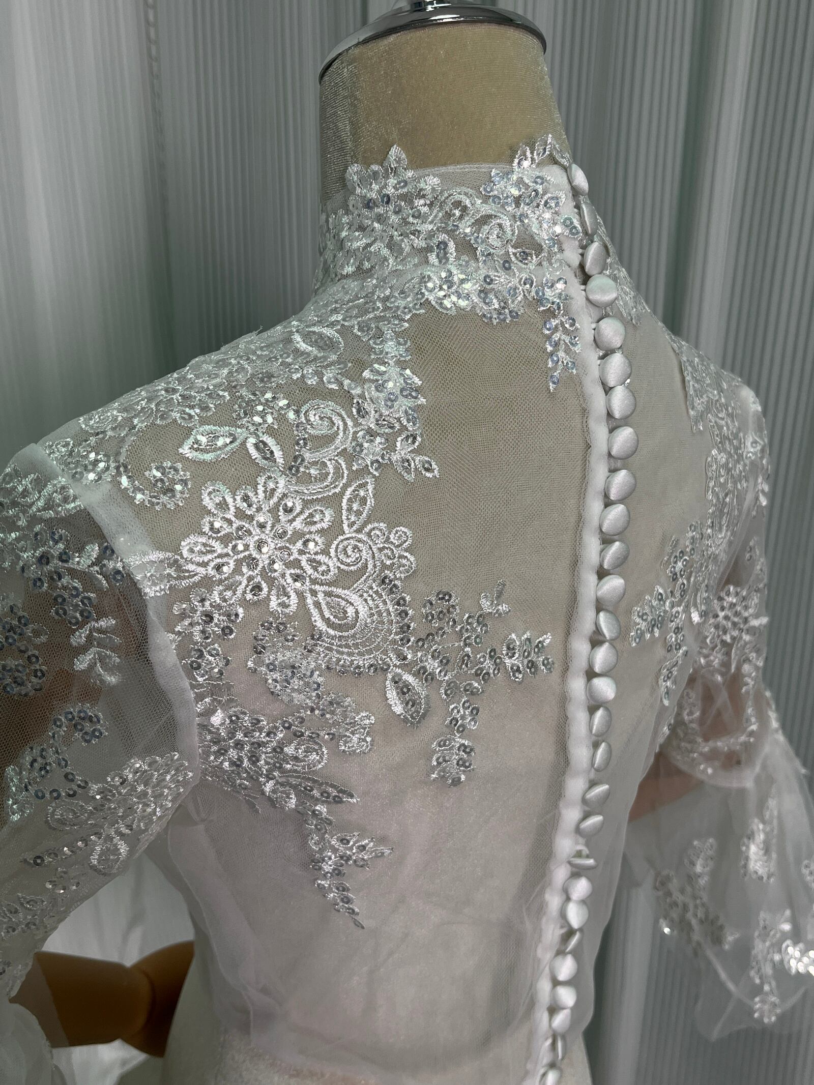 ボレロ ハイネック ふわふわ袖 くるみボタン キラキラ光る刺繍 花嫁 可愛い 結婚式