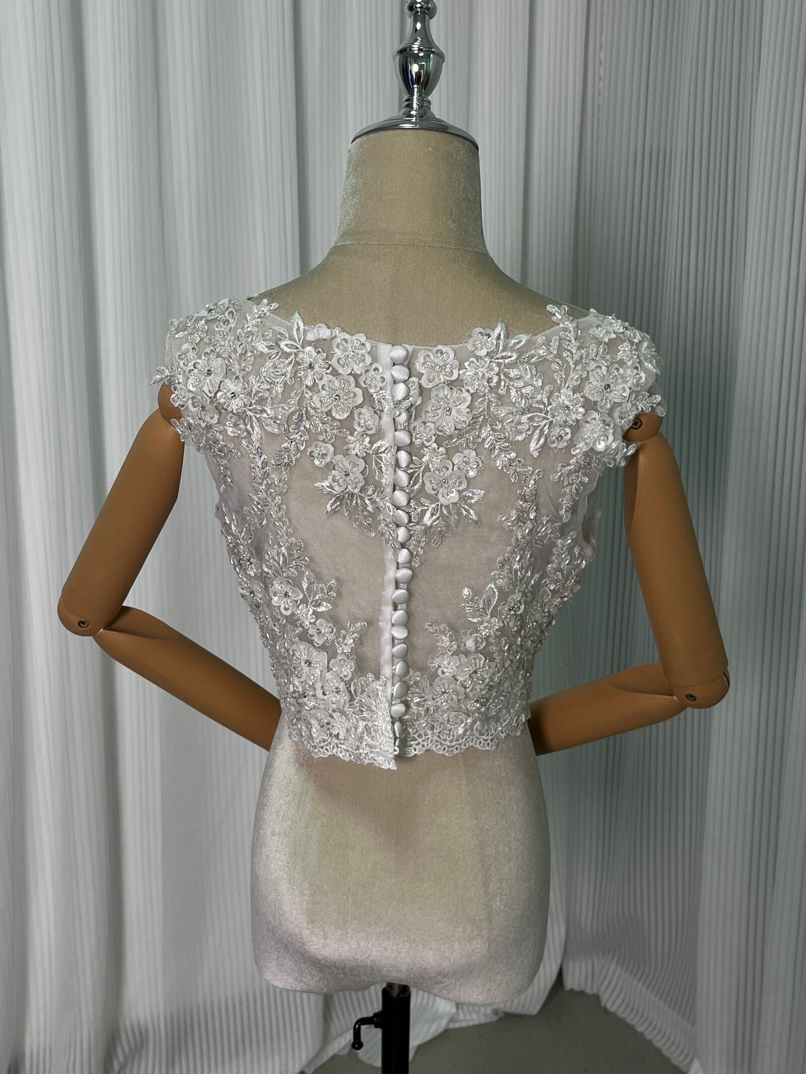 ボレロ ノースリーブ ラウンドネック キラキラ光る刺繍 くるみボタン 結婚式