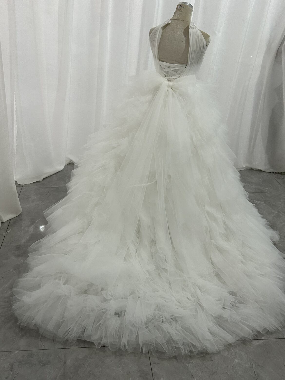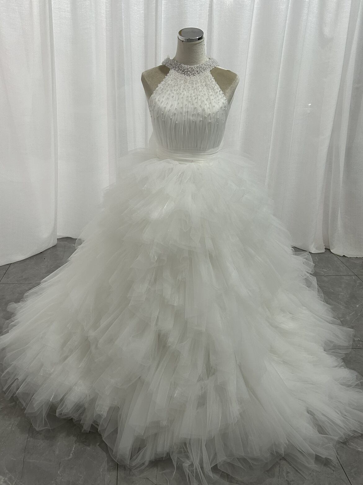 豪華!ウェディングドレス パール ホルターネック 背中見せ 大人っぽい フランス風 結婚式 前撮り