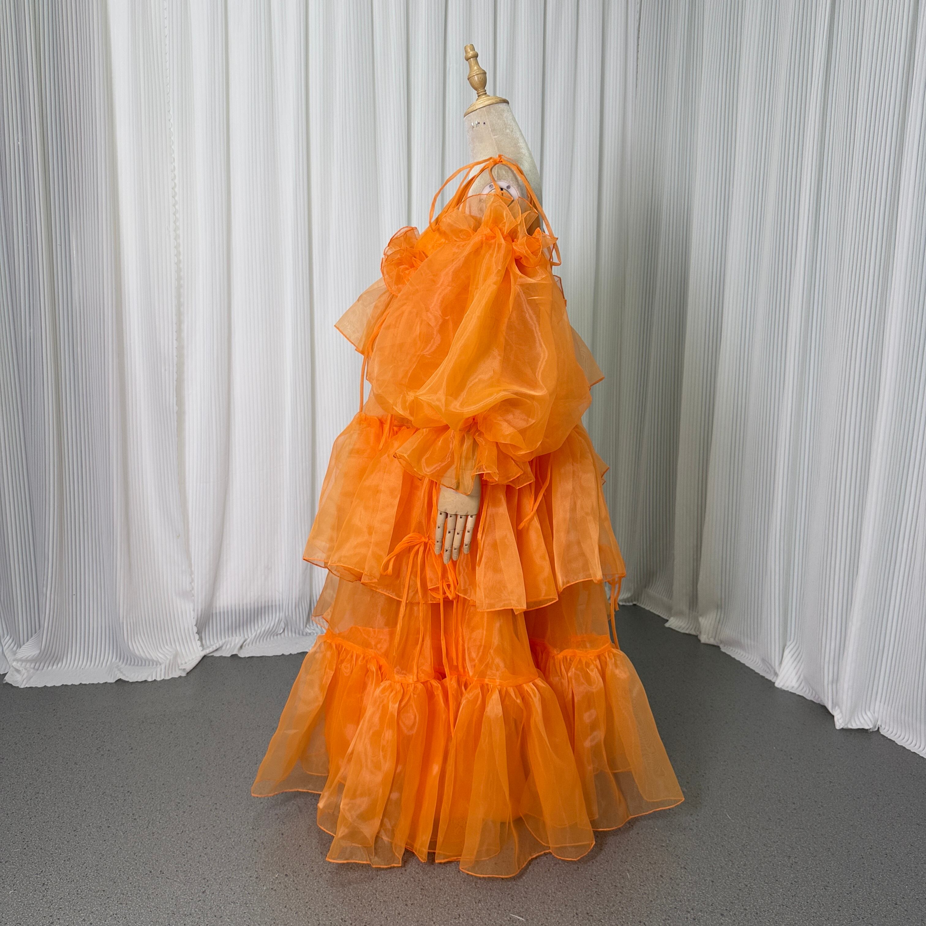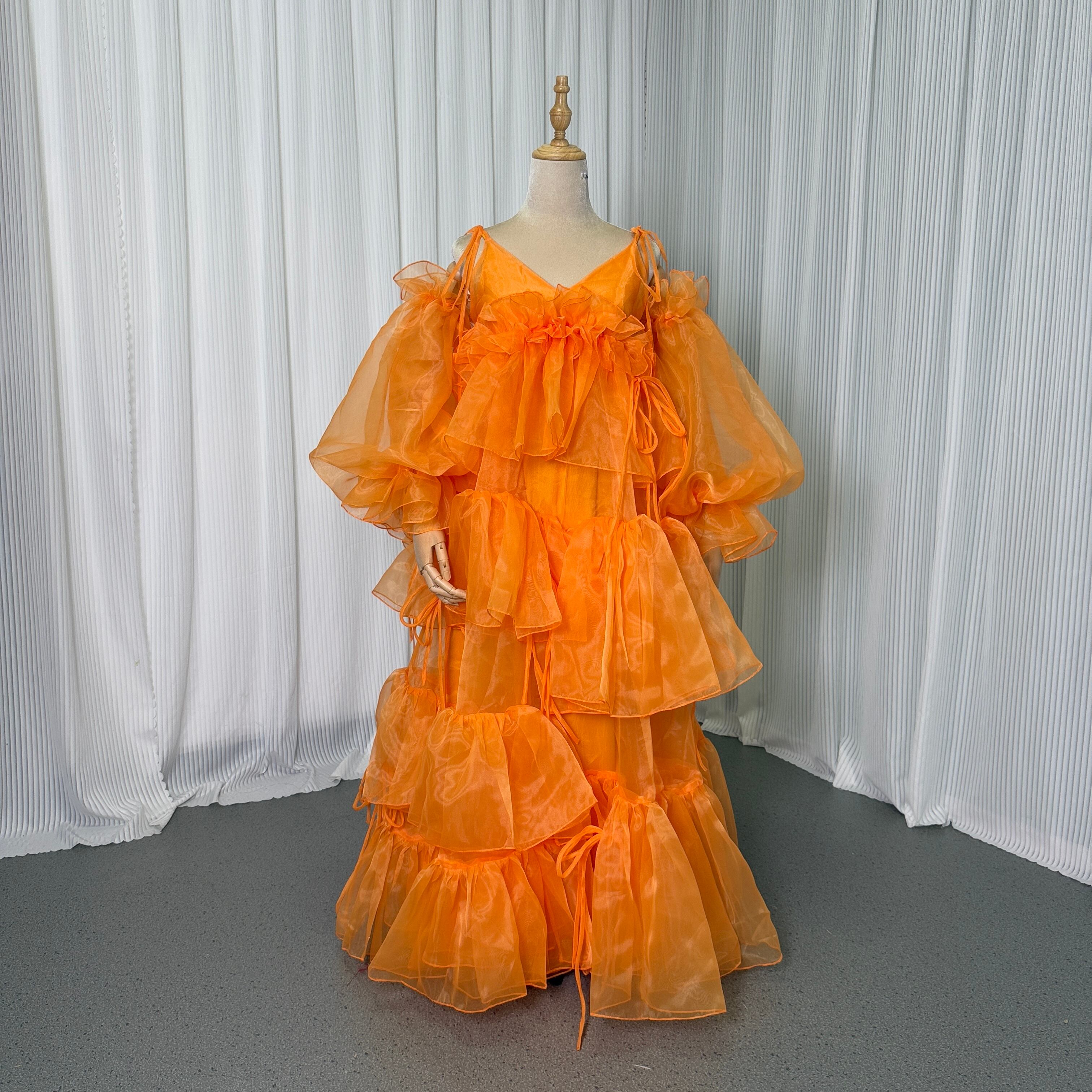 カラードレス オレンジ キャミソール Vネック 取り外し袖 アシンメトリードレス ロング 可愛い 花嫁 前撮り