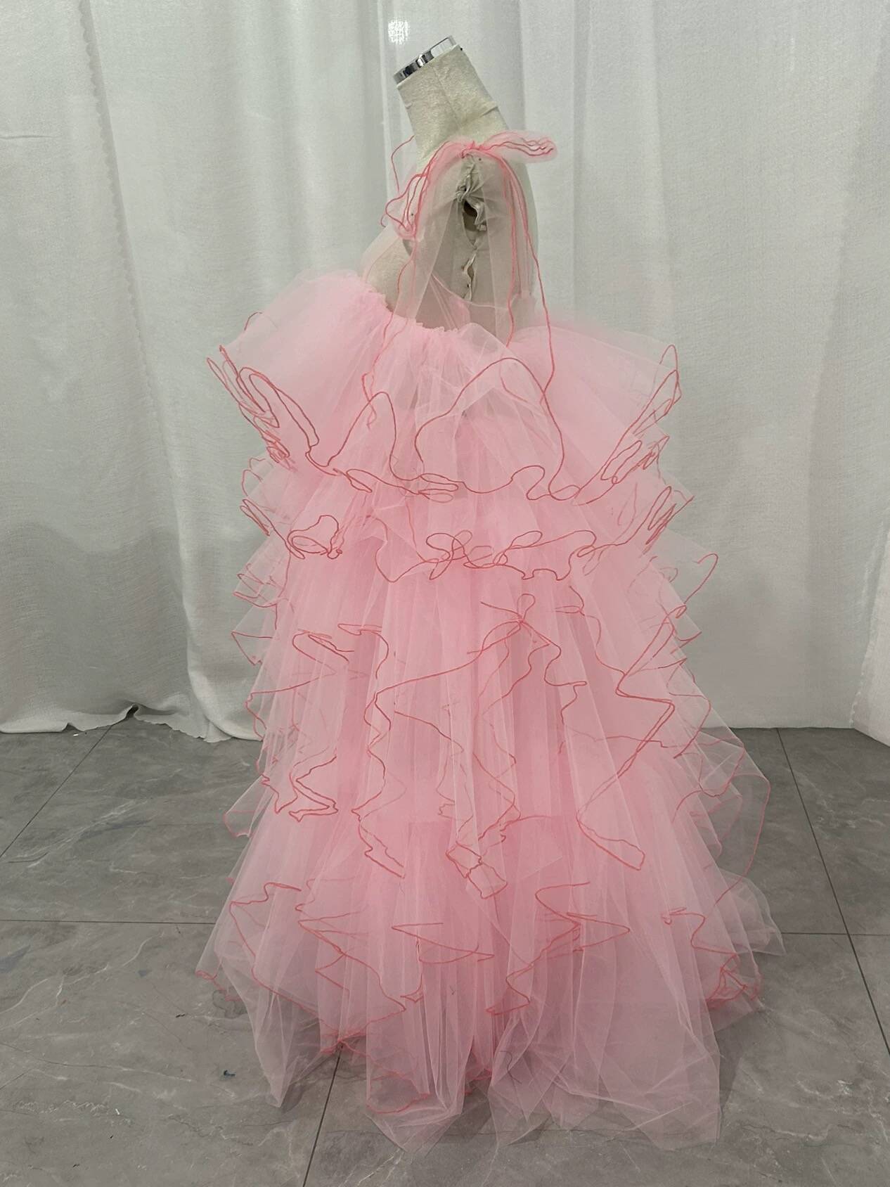 カラードレス ピンク オーバードレス キャミソール ラッフルフリル ロング 背中見せ 花嫁
