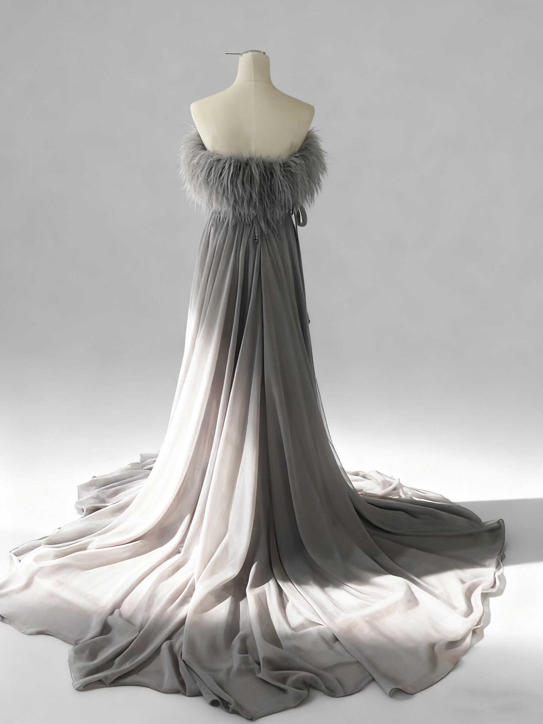 実例写真!カラードレス グレー ベアトップ オーストリッチ 優雅なシルエット 披露宴 前撮り