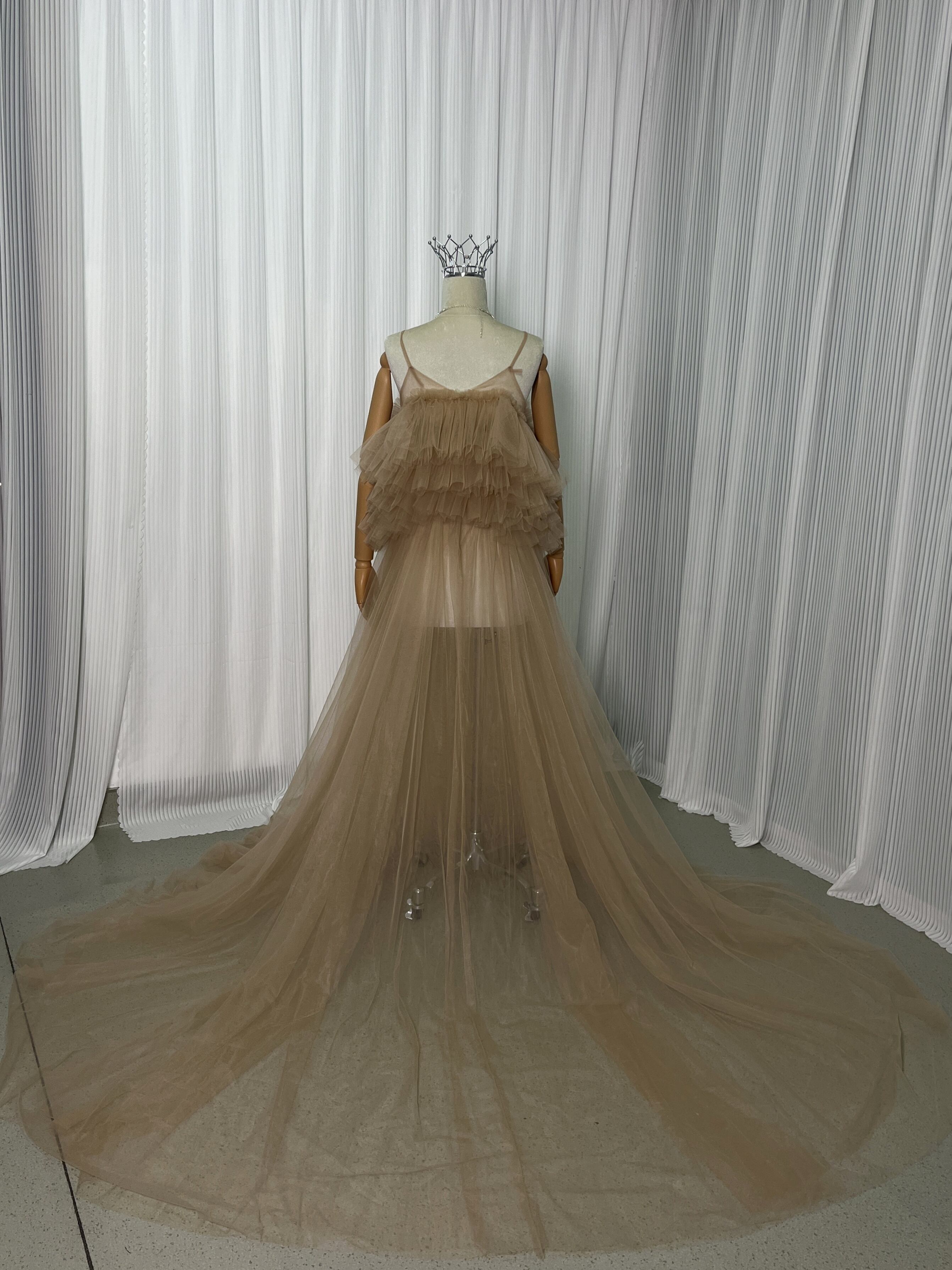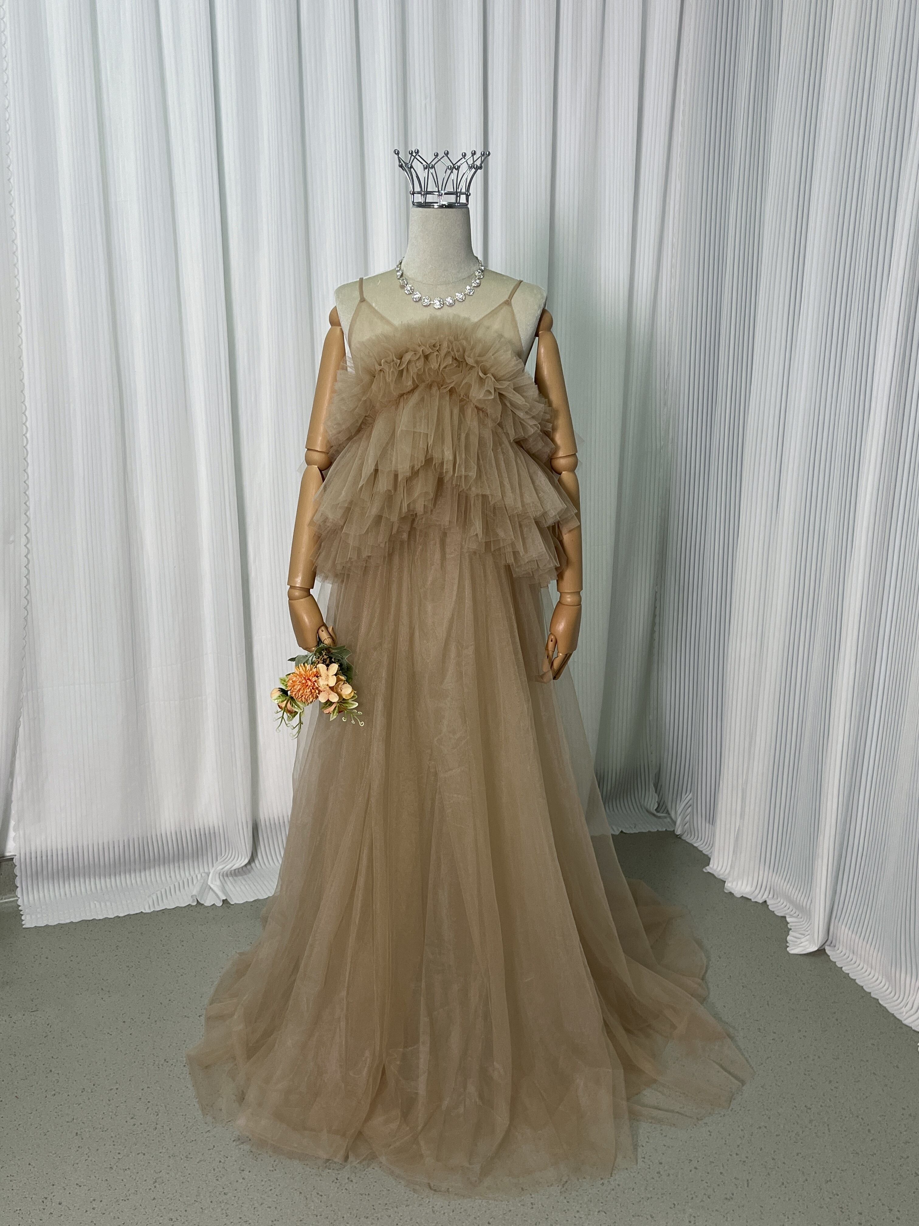 キャミソール カーキ色 カラードレス ラッフルフリル エアリー感 ソフトチュール 妊婦 前撮り