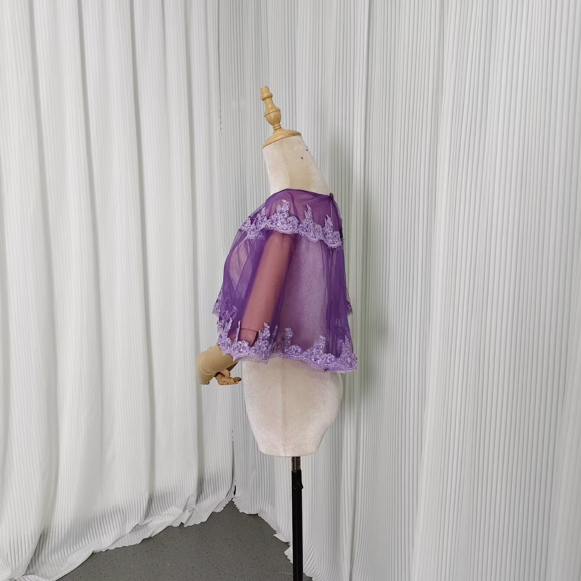 ポンチョ パープル 繊細レース ソフトチュール くるみボタン 2次会/合コン