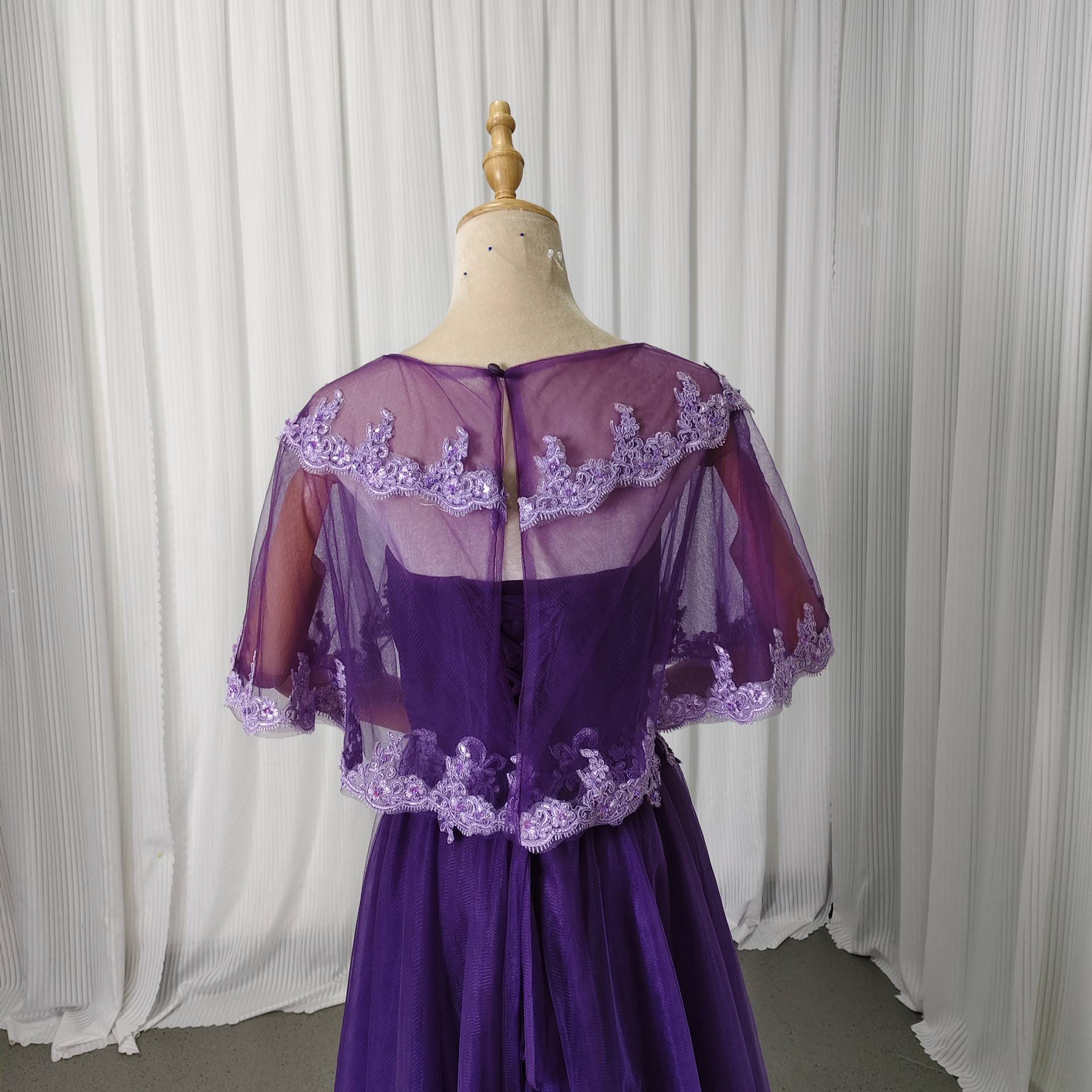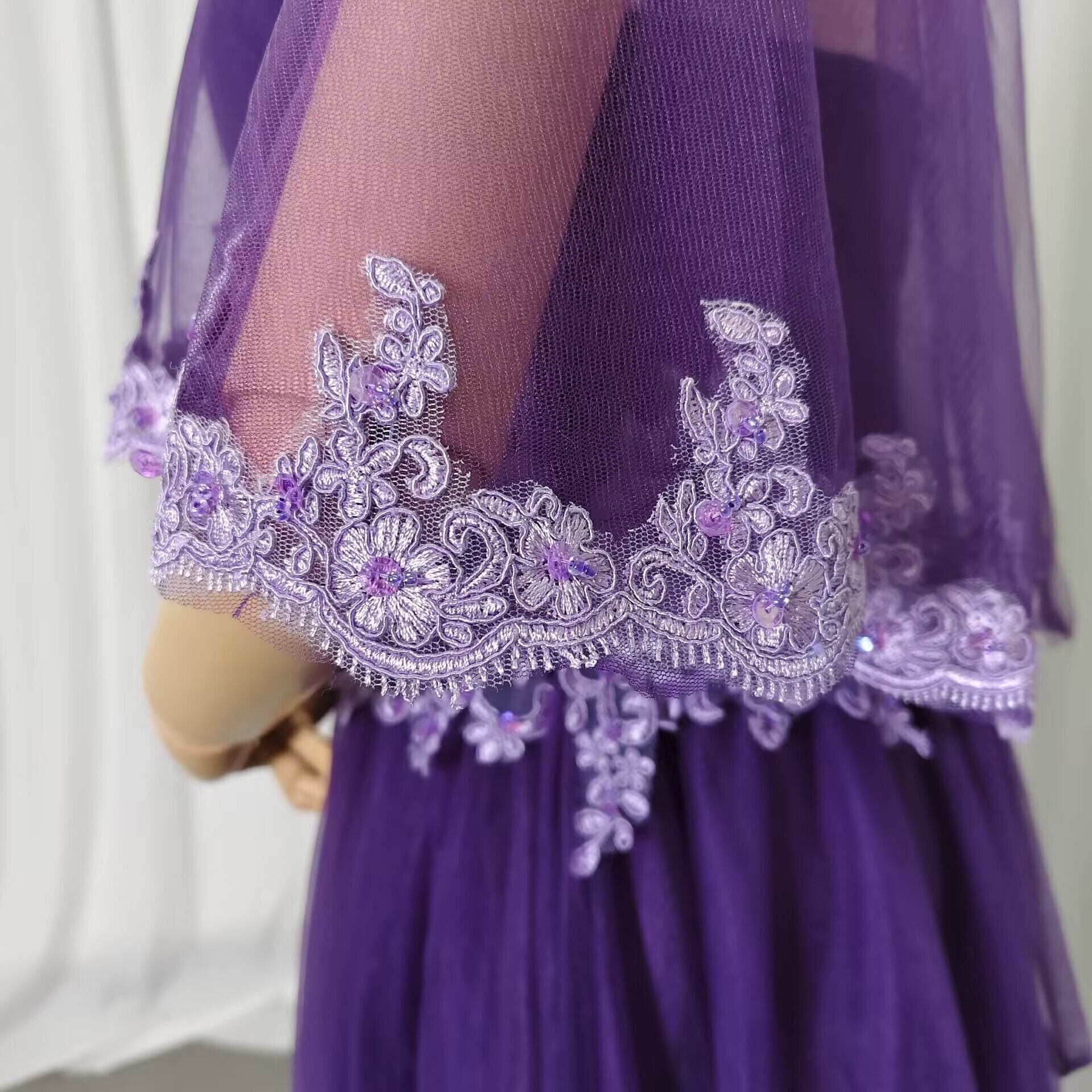 カラードレス パープル トップス+スカート 繊細レース ロング 細見えシルエット 音楽会/発表会