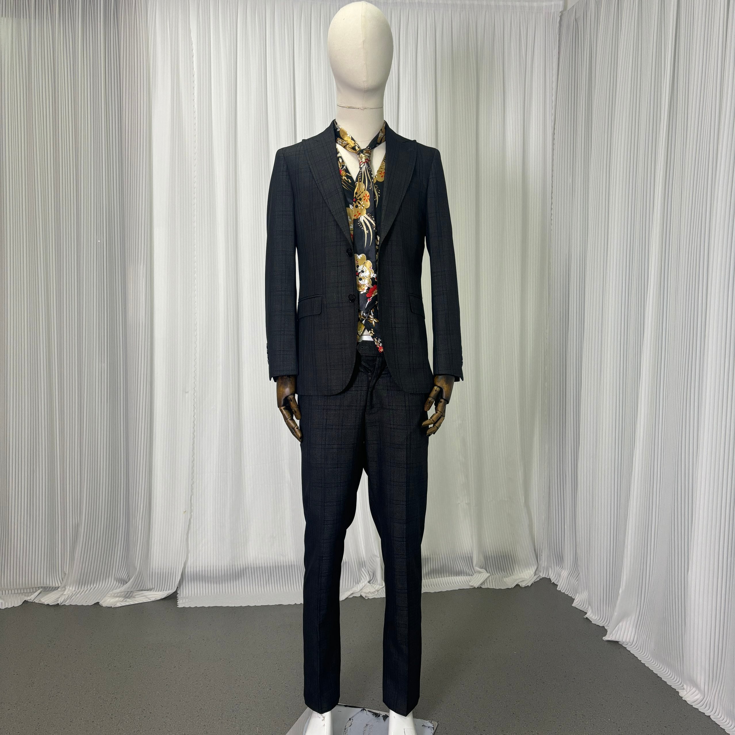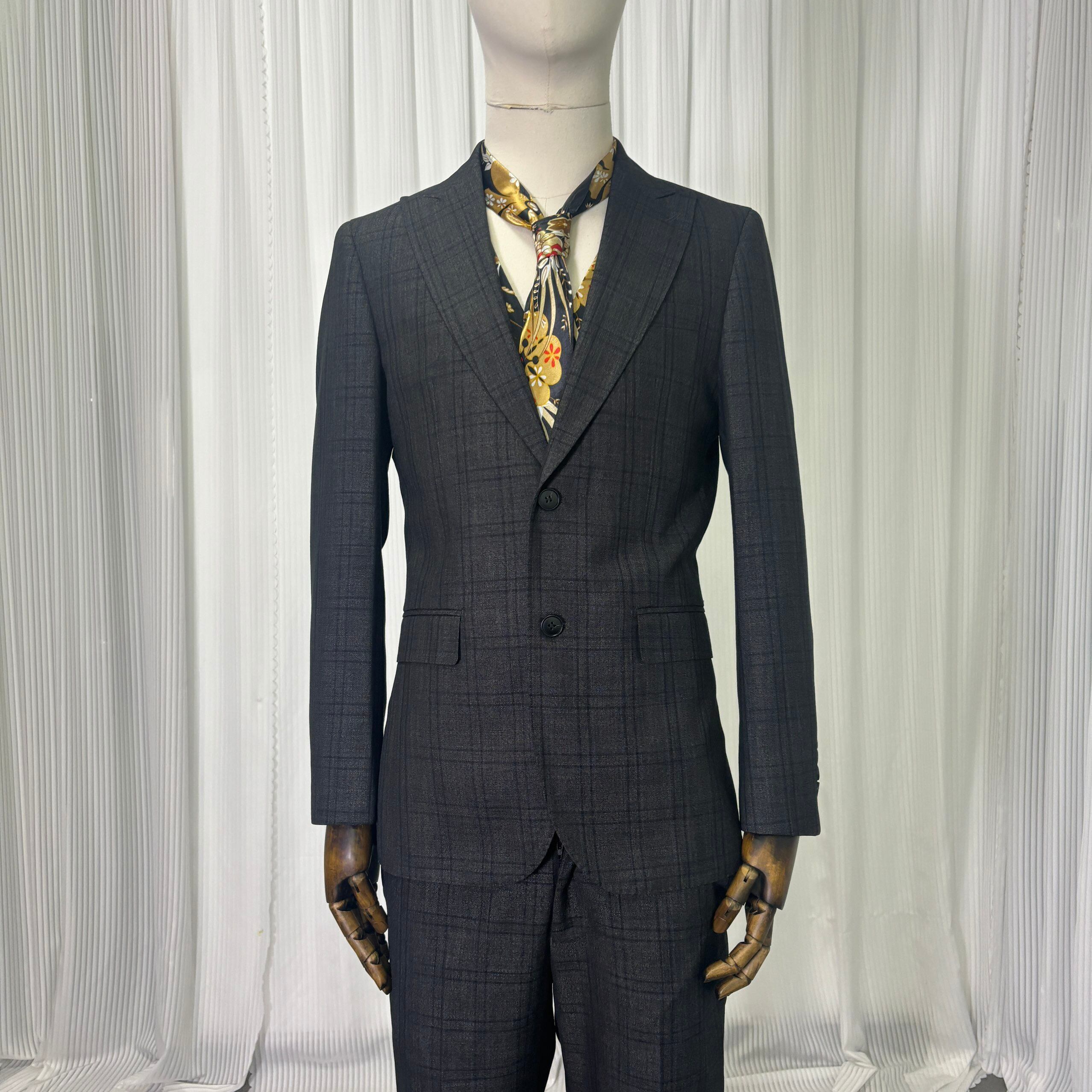 ①デザインオーダー:生地、ラペル形状(ノッチド/ピークド)、ボタンの数、内張り生地までオーダー可能です。事前にご相談くださいませ。