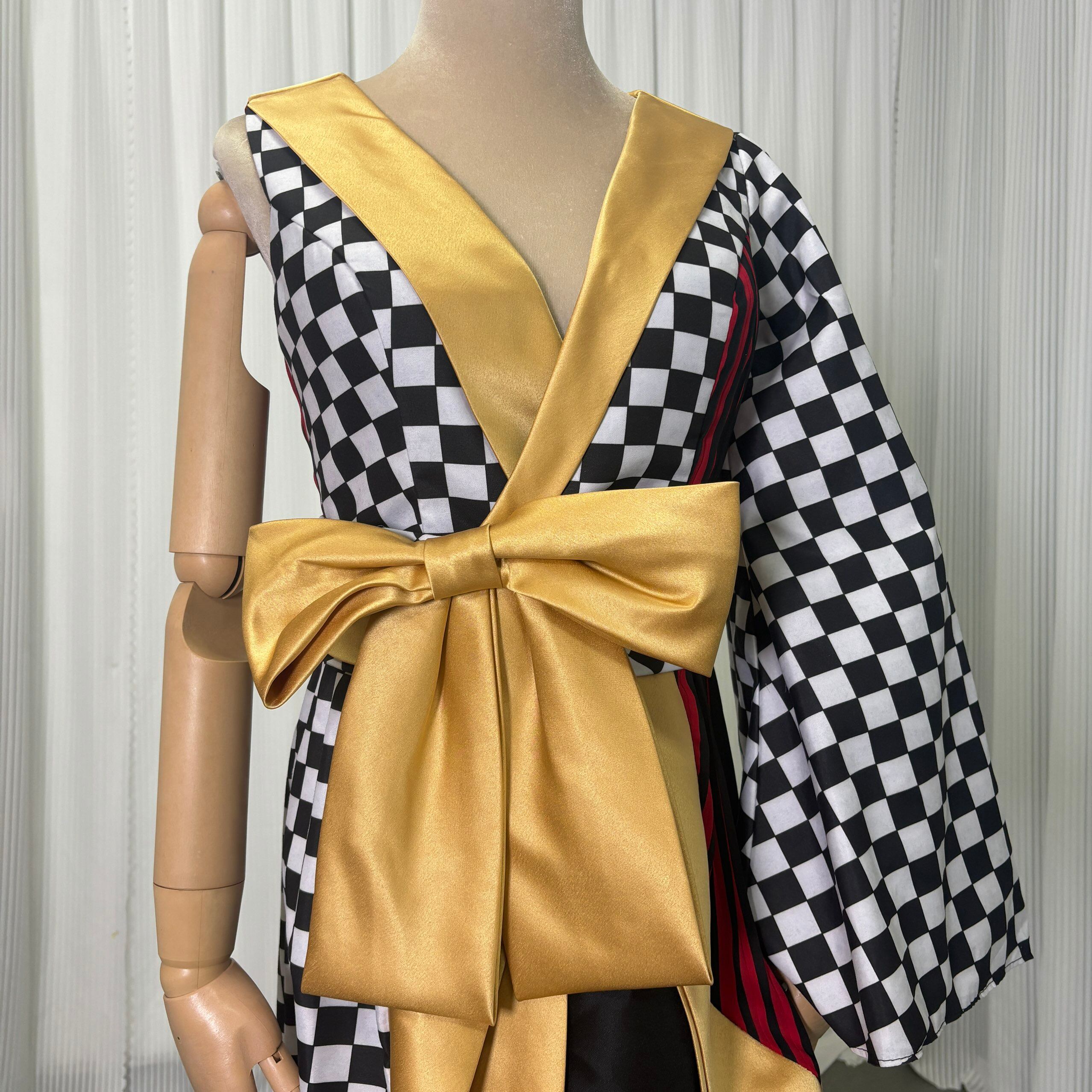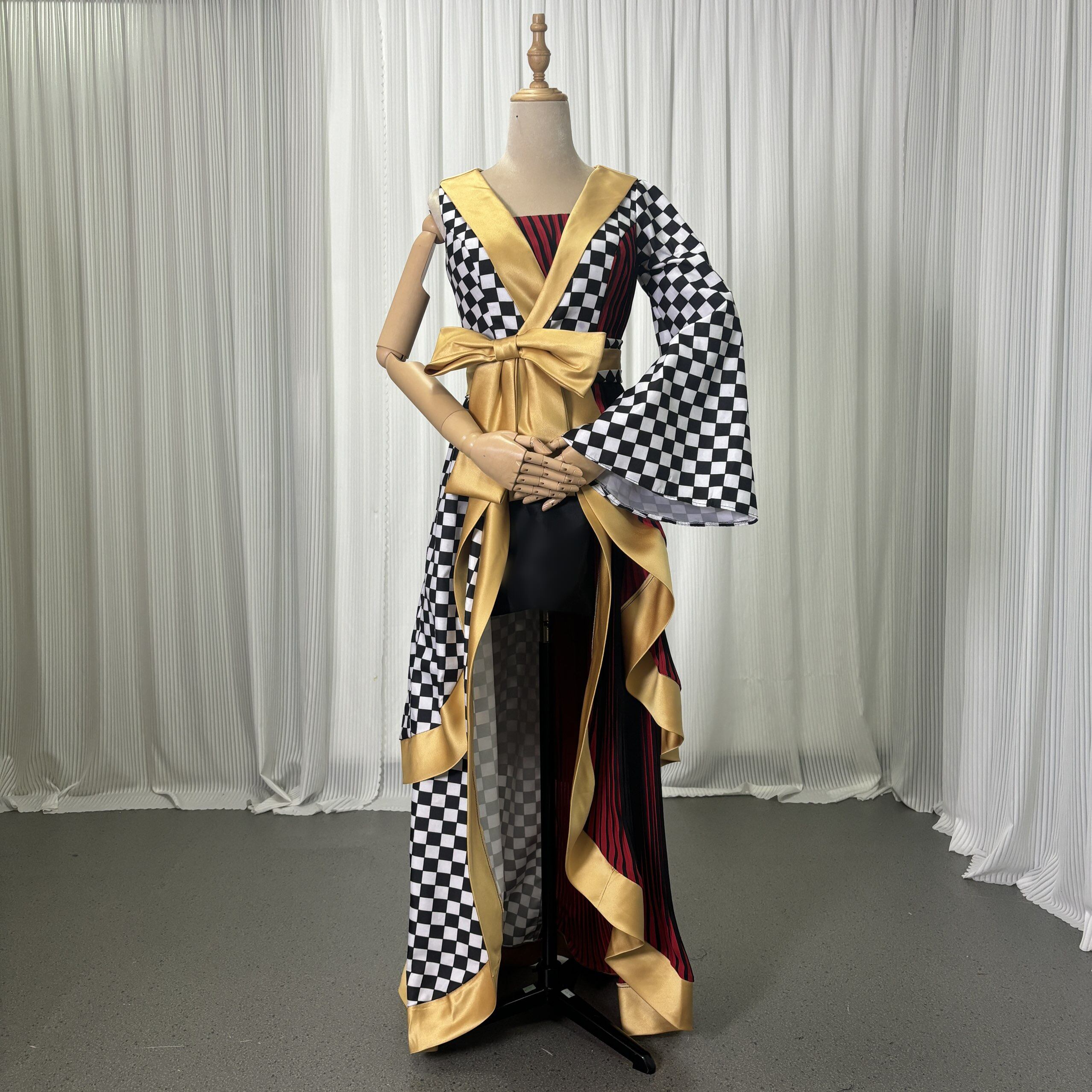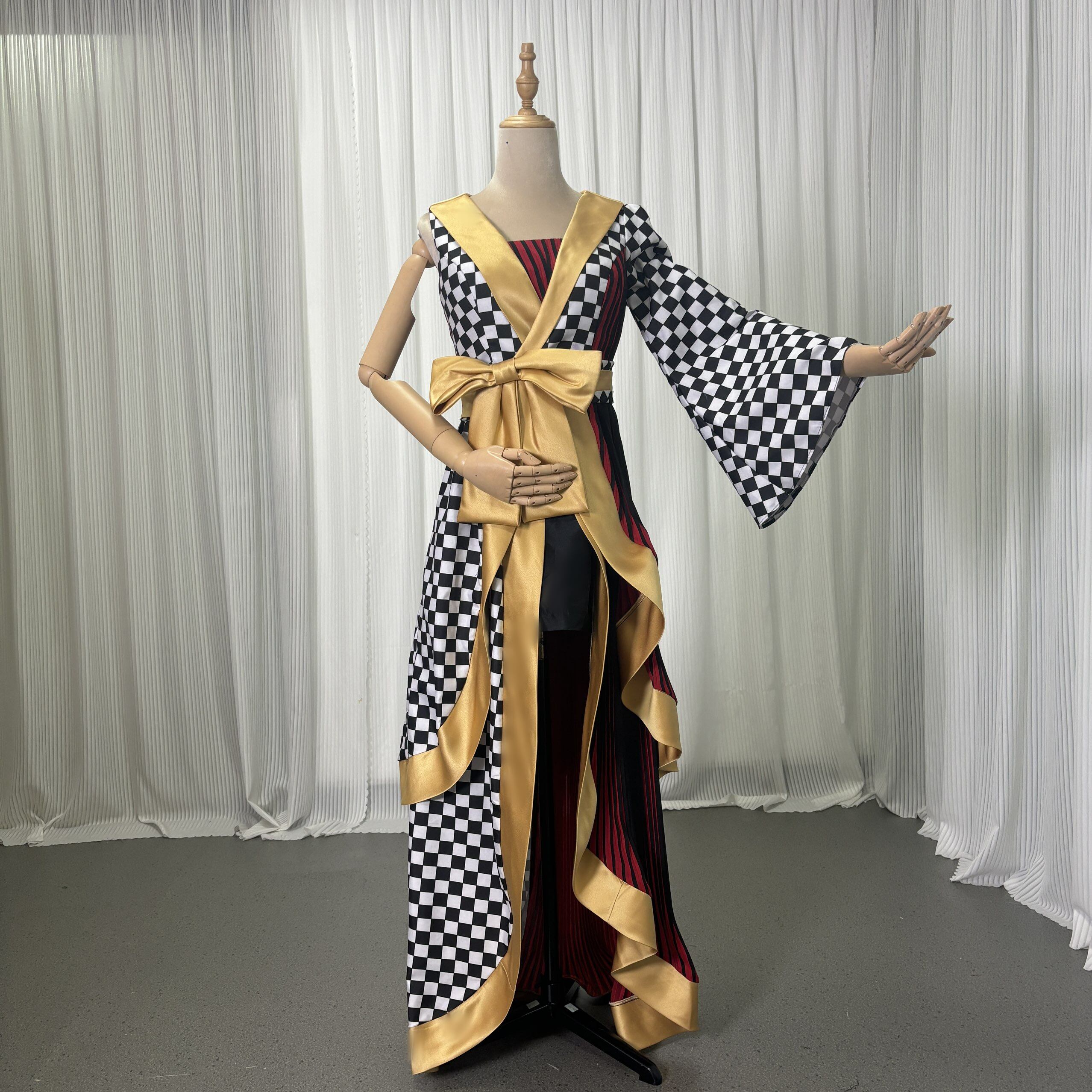 実例写真!着物ドレス、和風ドレス フレア袖 キュロットスカート アシンメトリードレス ブラック フィッシュテール