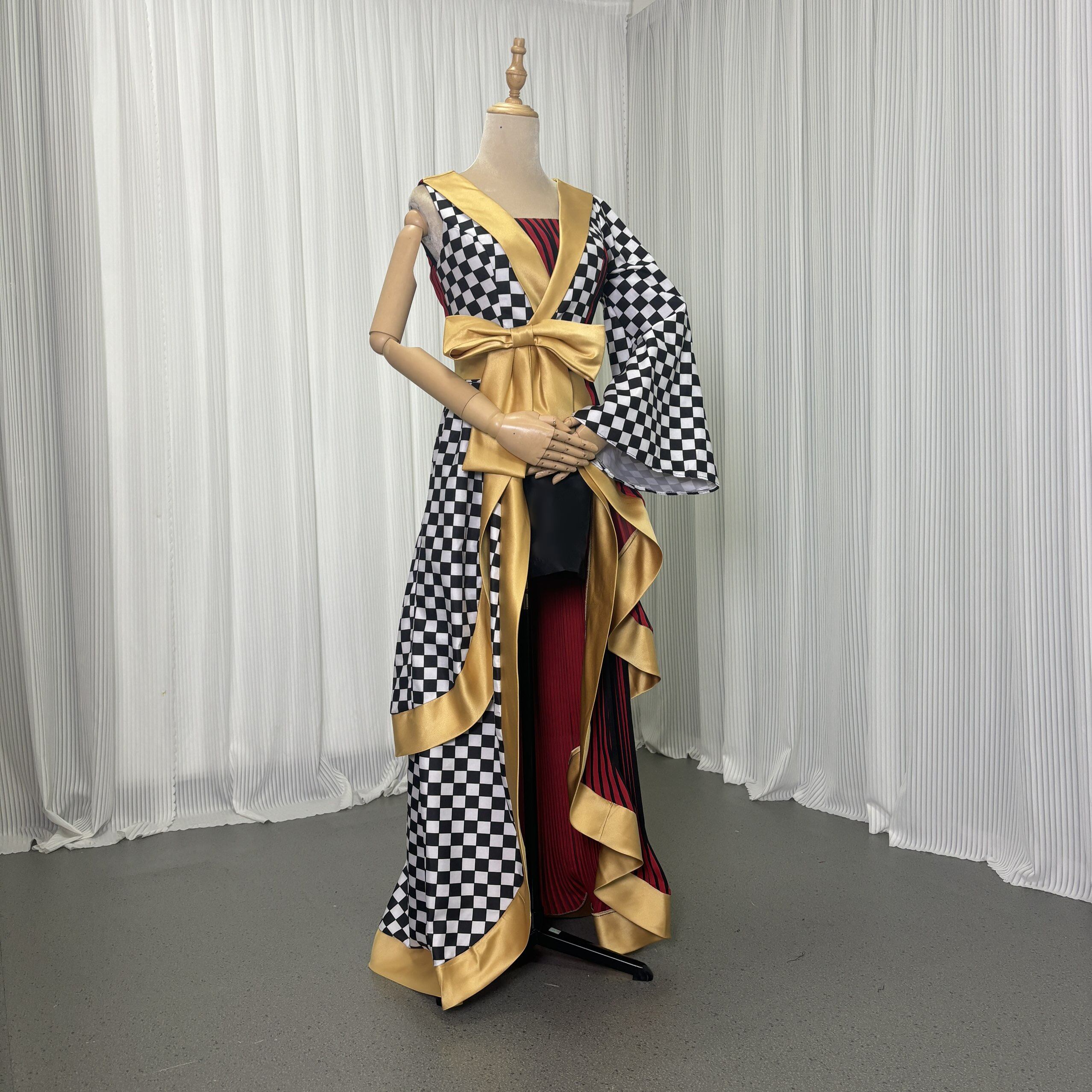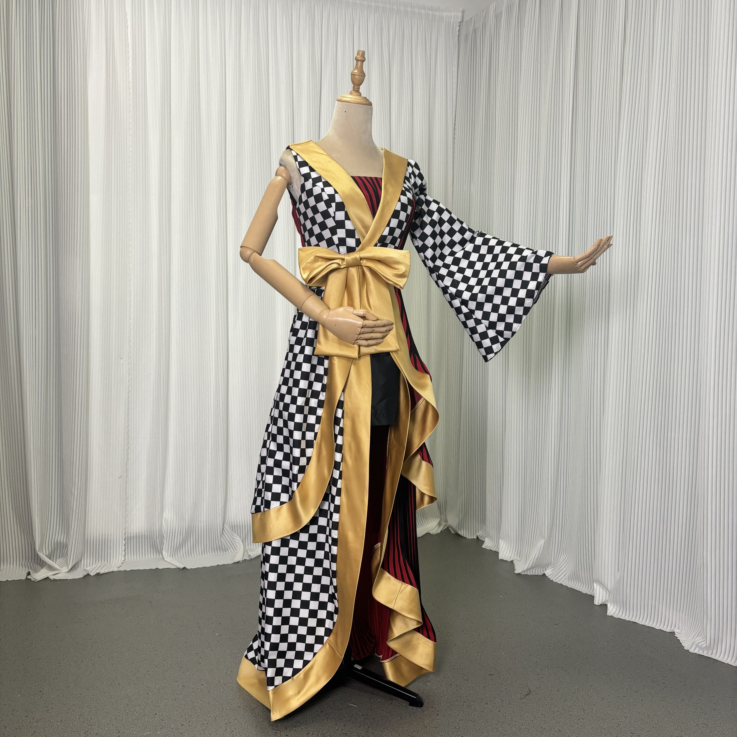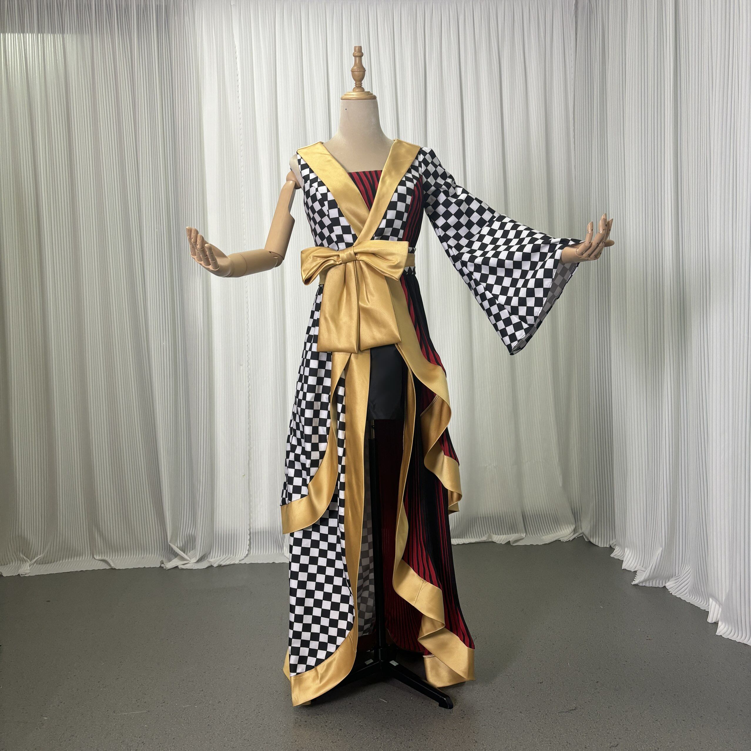 実例写真!着物ドレス、和風ドレス フレア袖 キュロットスカート アシンメトリードレス ブラック フィッシュテール